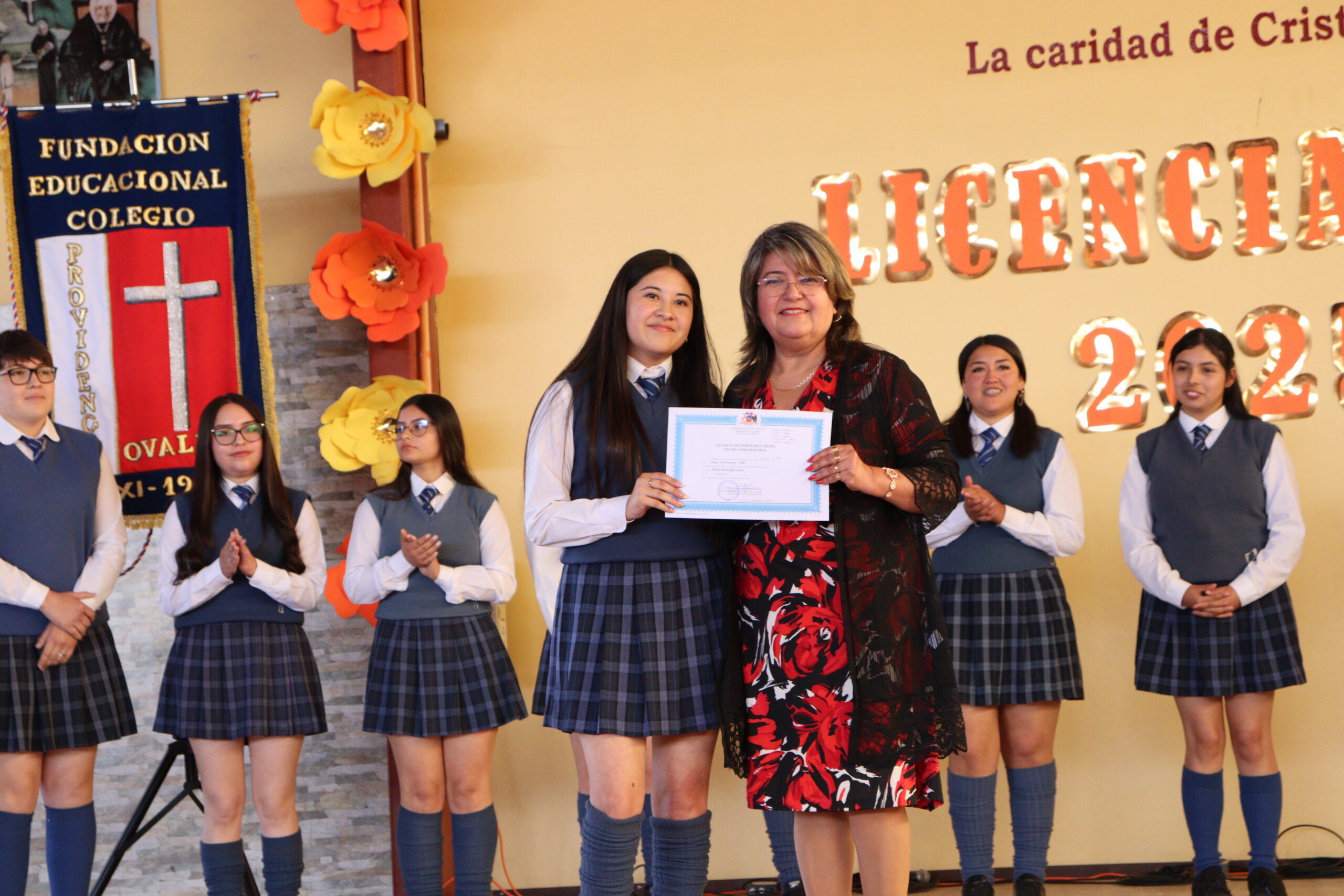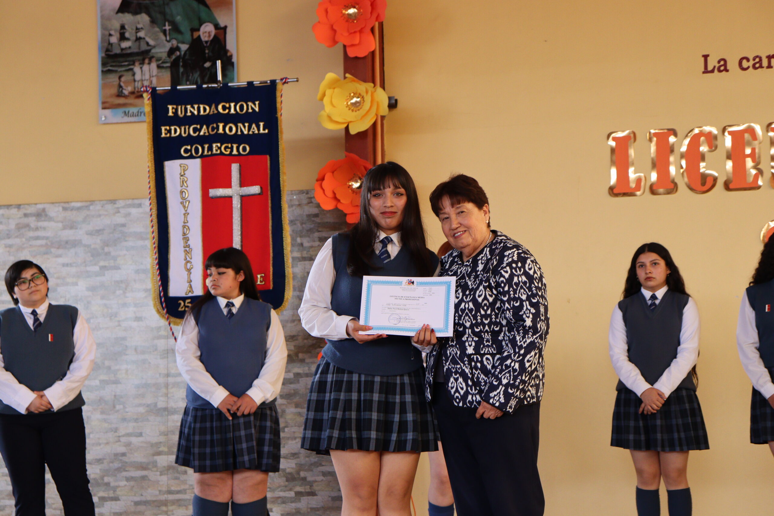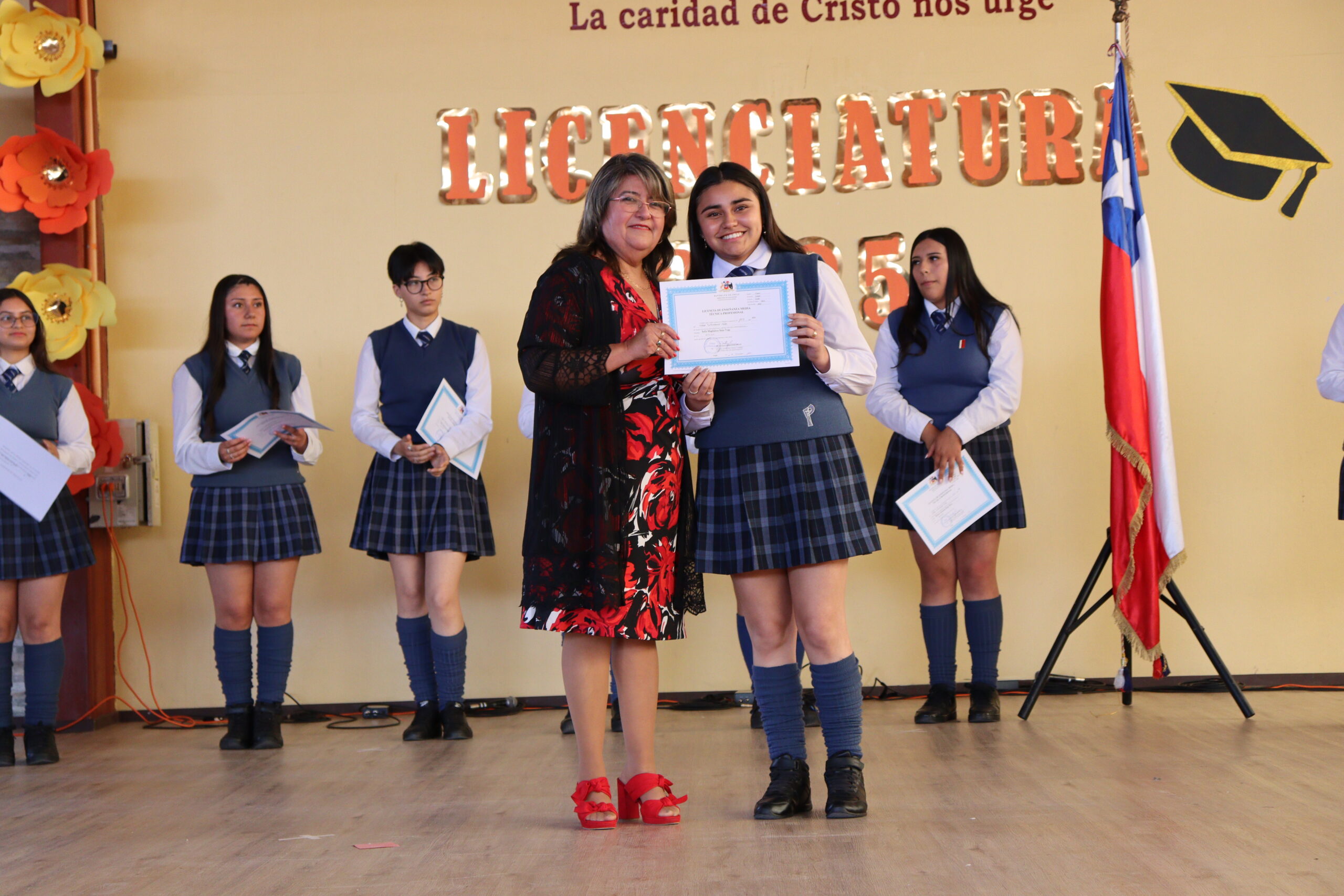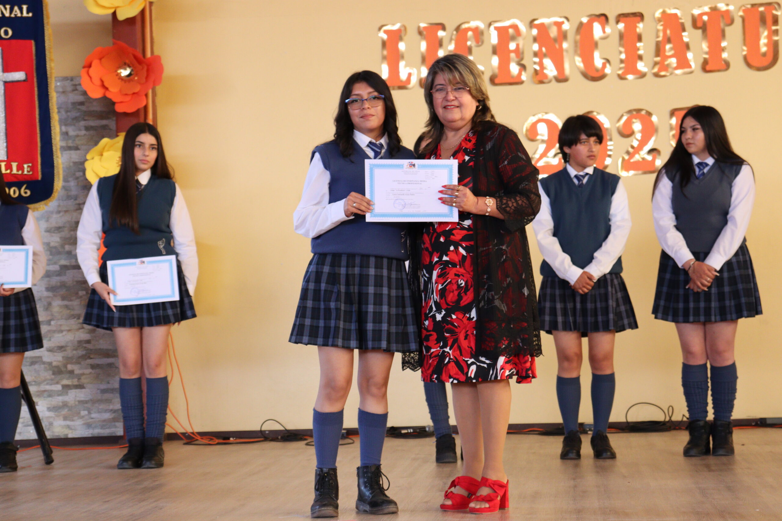 - Mejor rendimiento académico: Antonella Rojas Araya (4°A), Ana Carvajal López (4°B), Kathalina Anabalón Rojas (4°C), Licett Zarricueta Castillo (4°D), Zayoret Núñez Araya (4°E) y Scarleht Pinilla Campusano (4°F).