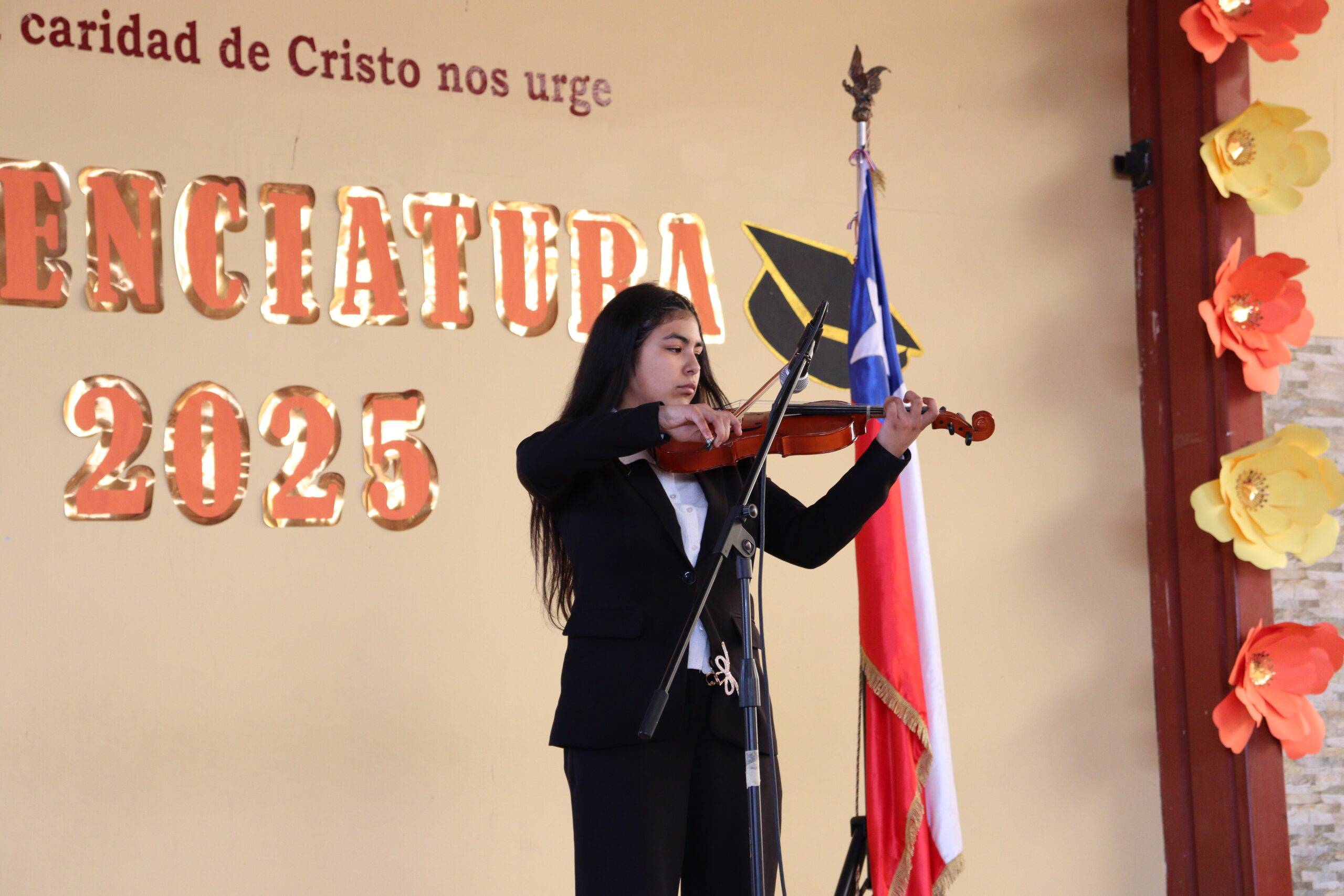 La ceremonia estuvo marcada por presentaciones artísticas que dieron un sello de emoción y belleza: la estudiante Sandra Montalbán (3°E) interpretó en violín la pieza “Rouse of Habahce”; la academia de danza dirigida por la docente Inés Boyd ofreció una coreografía en homenaje a las licenciadas; y los profesores de música Iván Ramírez y Óscar García, junto a la Sra. Nelly García, interpretaron “Danza de Libélulas”.