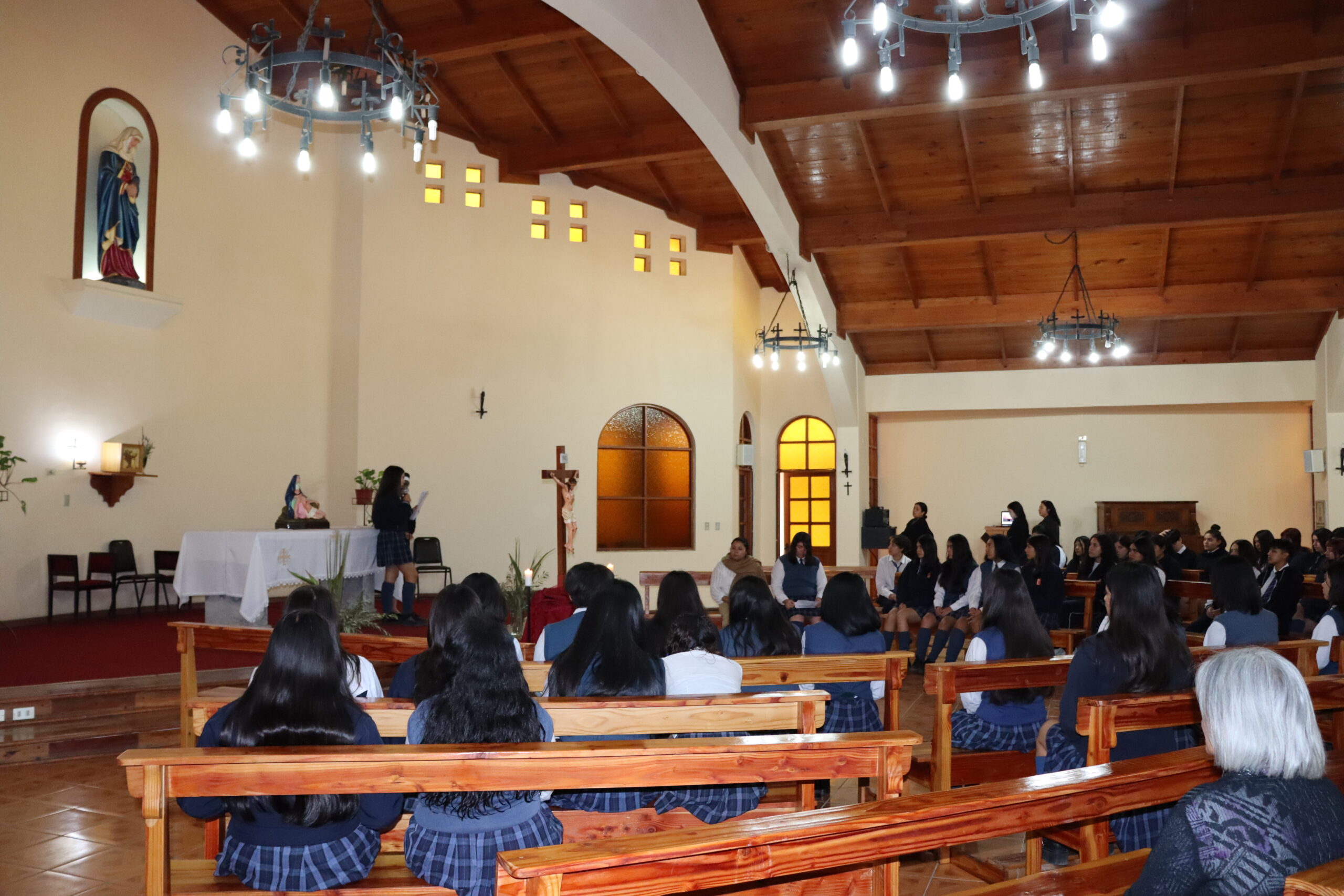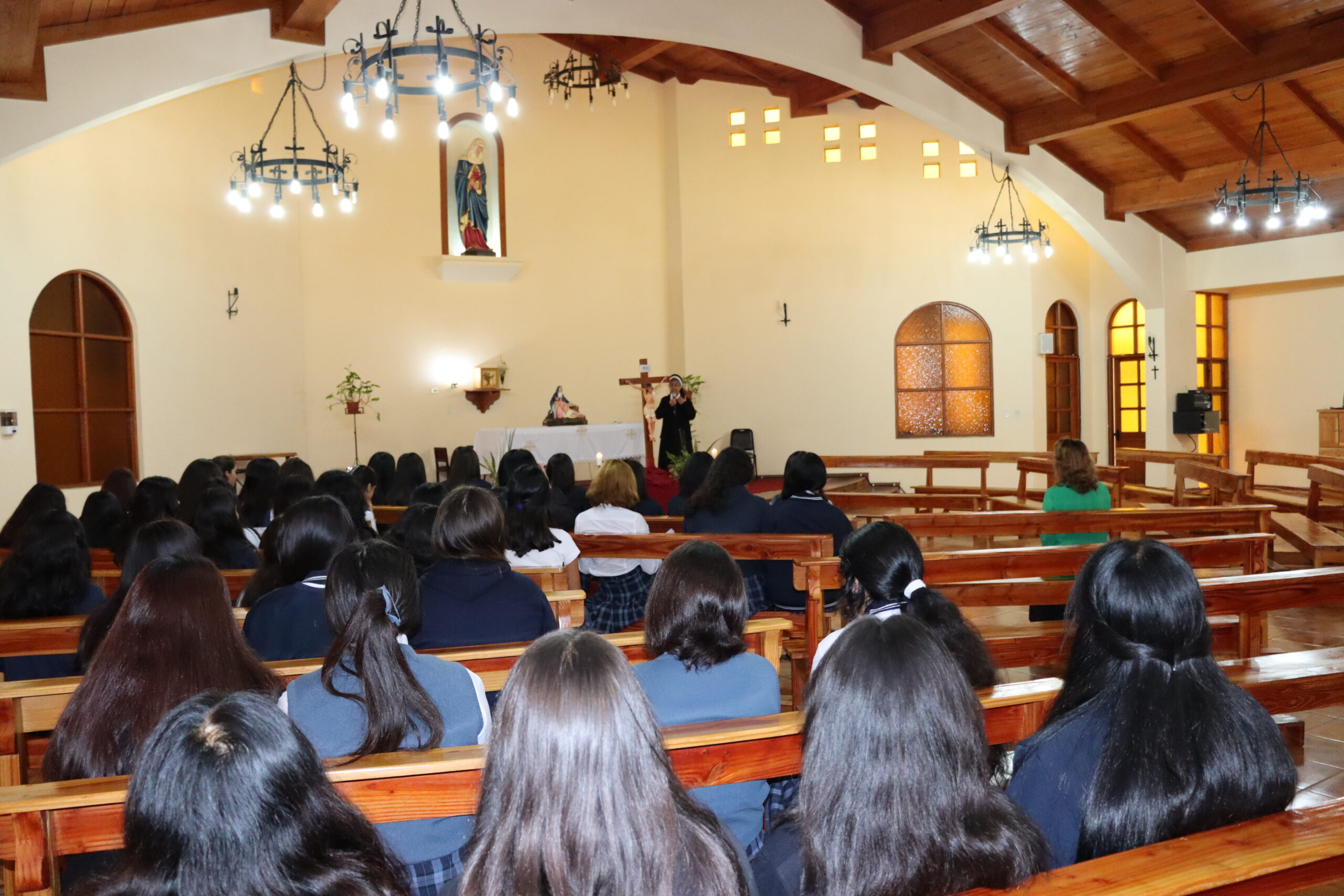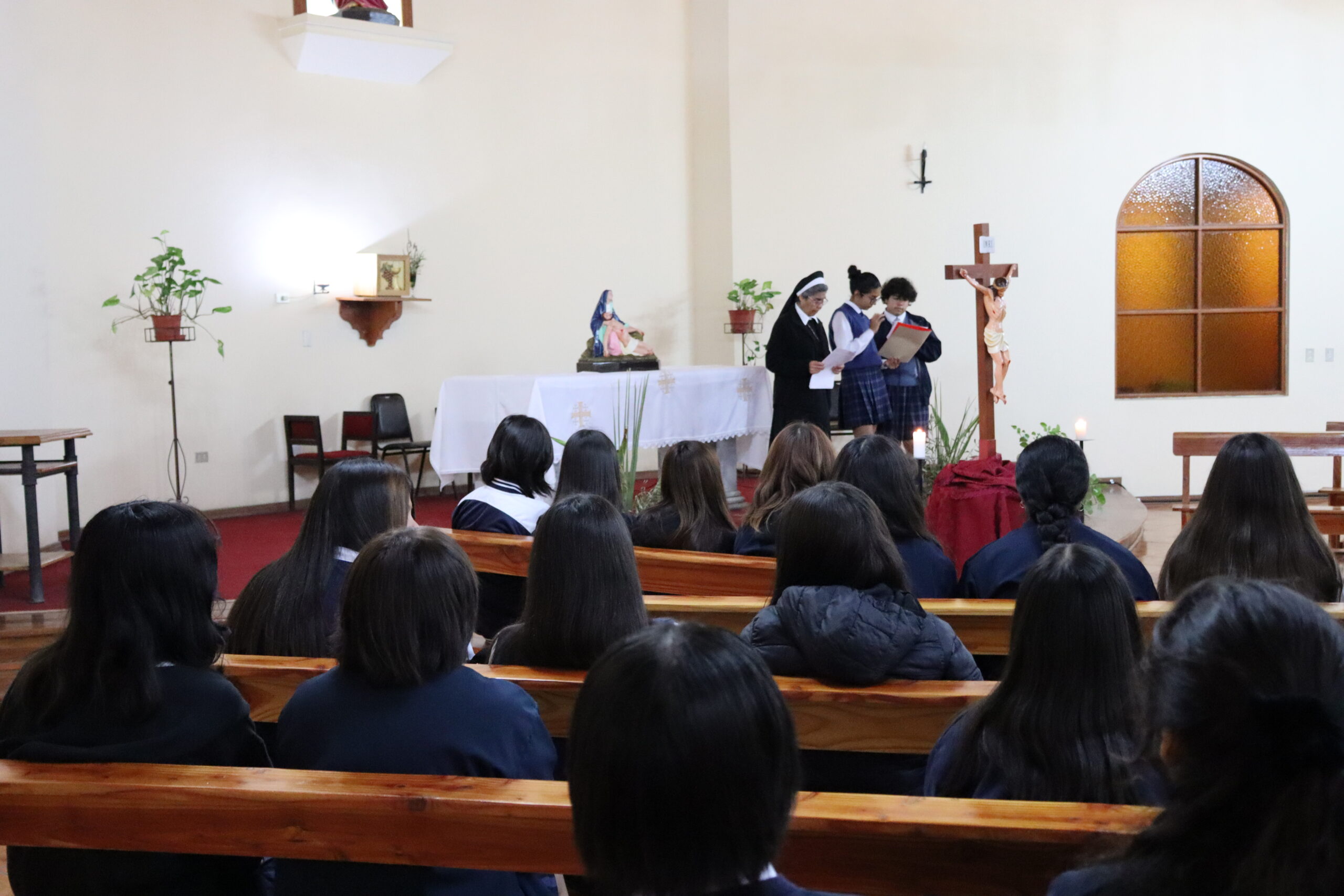 Durante la celebración, la Hermana Elvira Letelier, destacó la participación y respeto con el que las estudiantes estuvieron durante la oración e invitó a seguir reflexionando en este Vía Crucis doloroso hacia el calvario de Jesús.