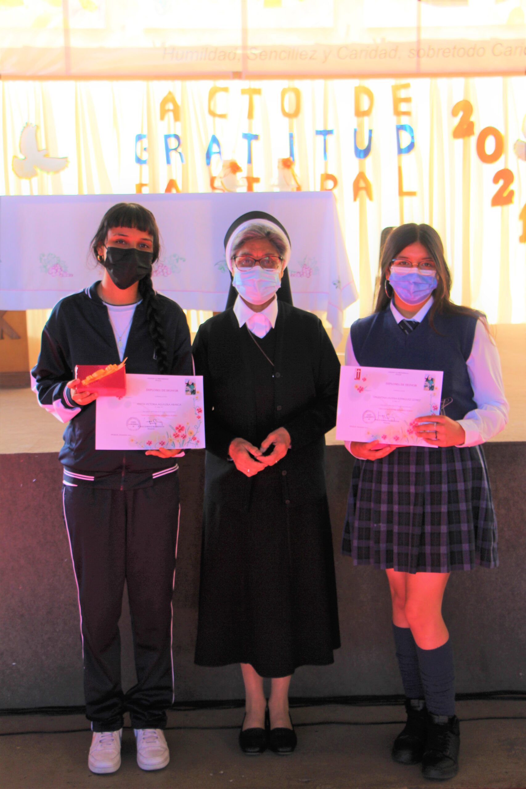 En la ocasión se premió a las estudiantes ganadoras del concurso literario de Pastoral “Carta a Madre Bernarda”, actividad desarrollada en el marco de la celebración del mes de La Providencia (Agosto).