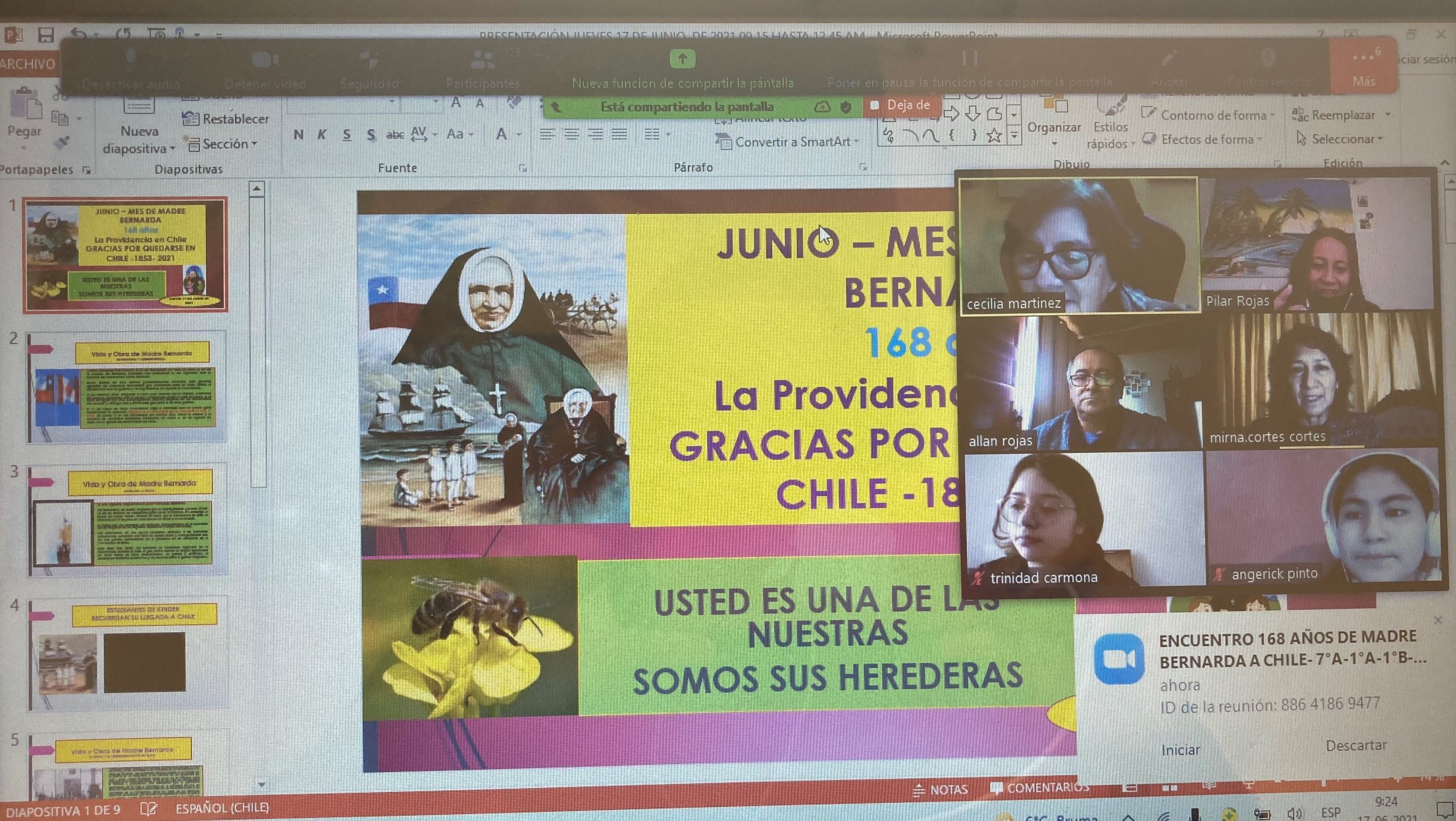 El pasado 17 de junio celebramos el aniversario 168 de la llegada de la Congregación de las Hermanas de la Providencia a Chile, es en este contexto que el equipo pastoral, conformado por las docentes; Sra. Cecilia Martínez y Pilar Rojas, realizaron encuentros vía Zoom, con la finalidad de dar a conocer la vida y obra de madre Bernarda Morín en Chile desde 1853-2021 y celebrar sus 168 años de su legado en Chile.