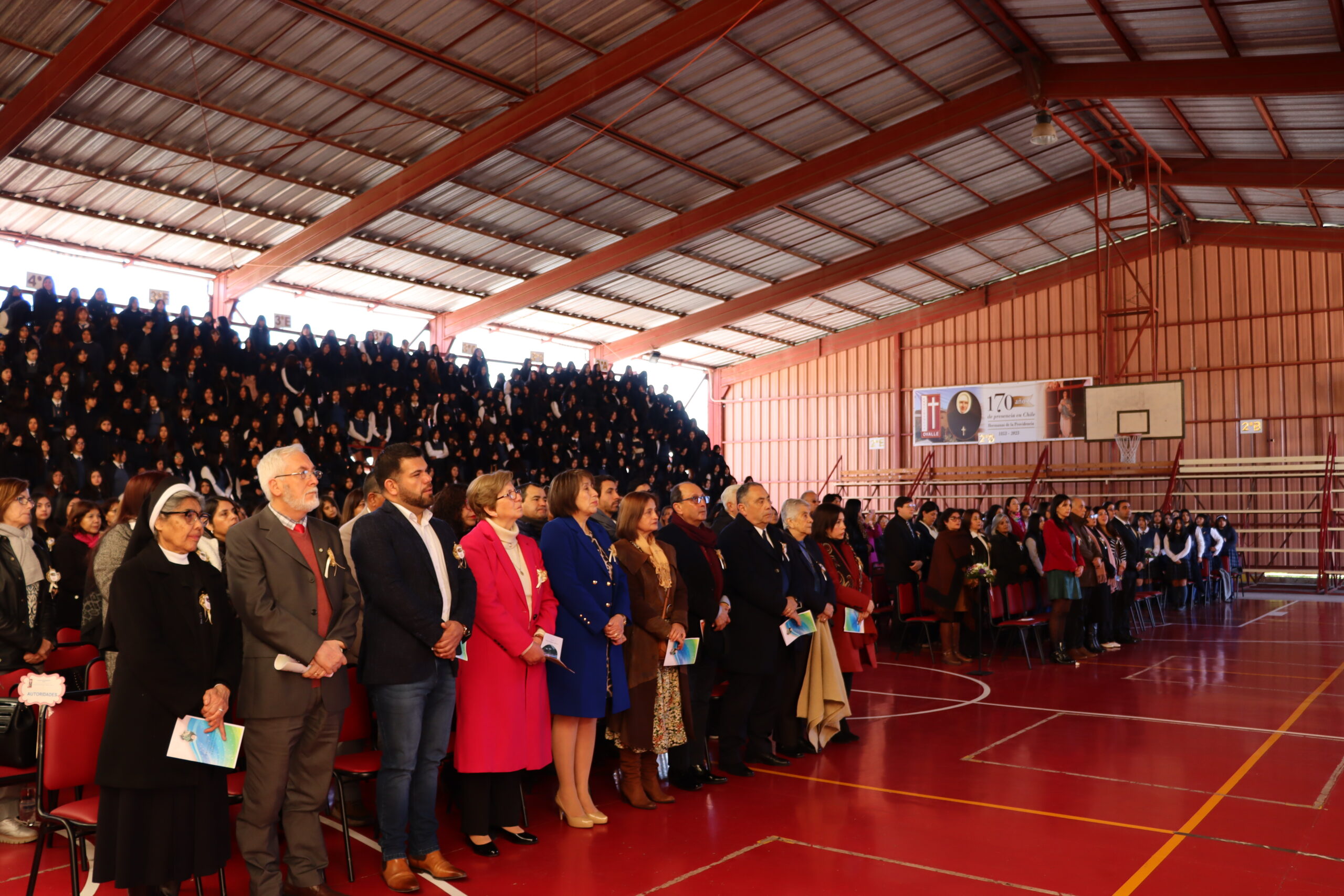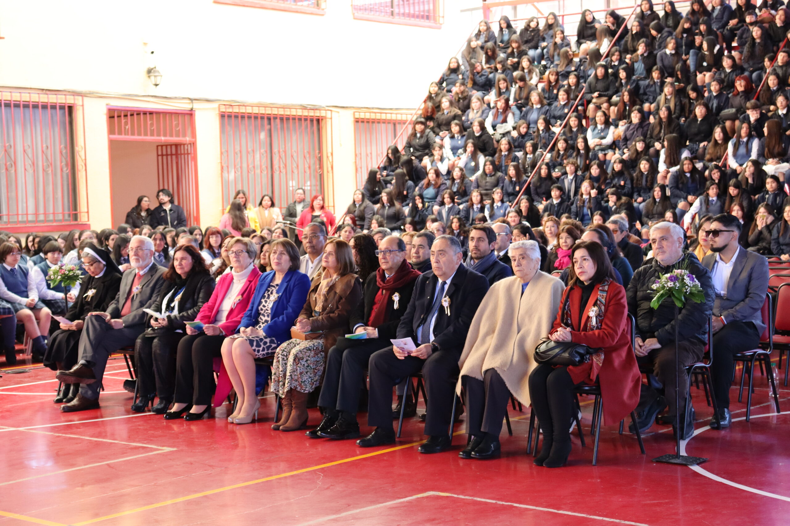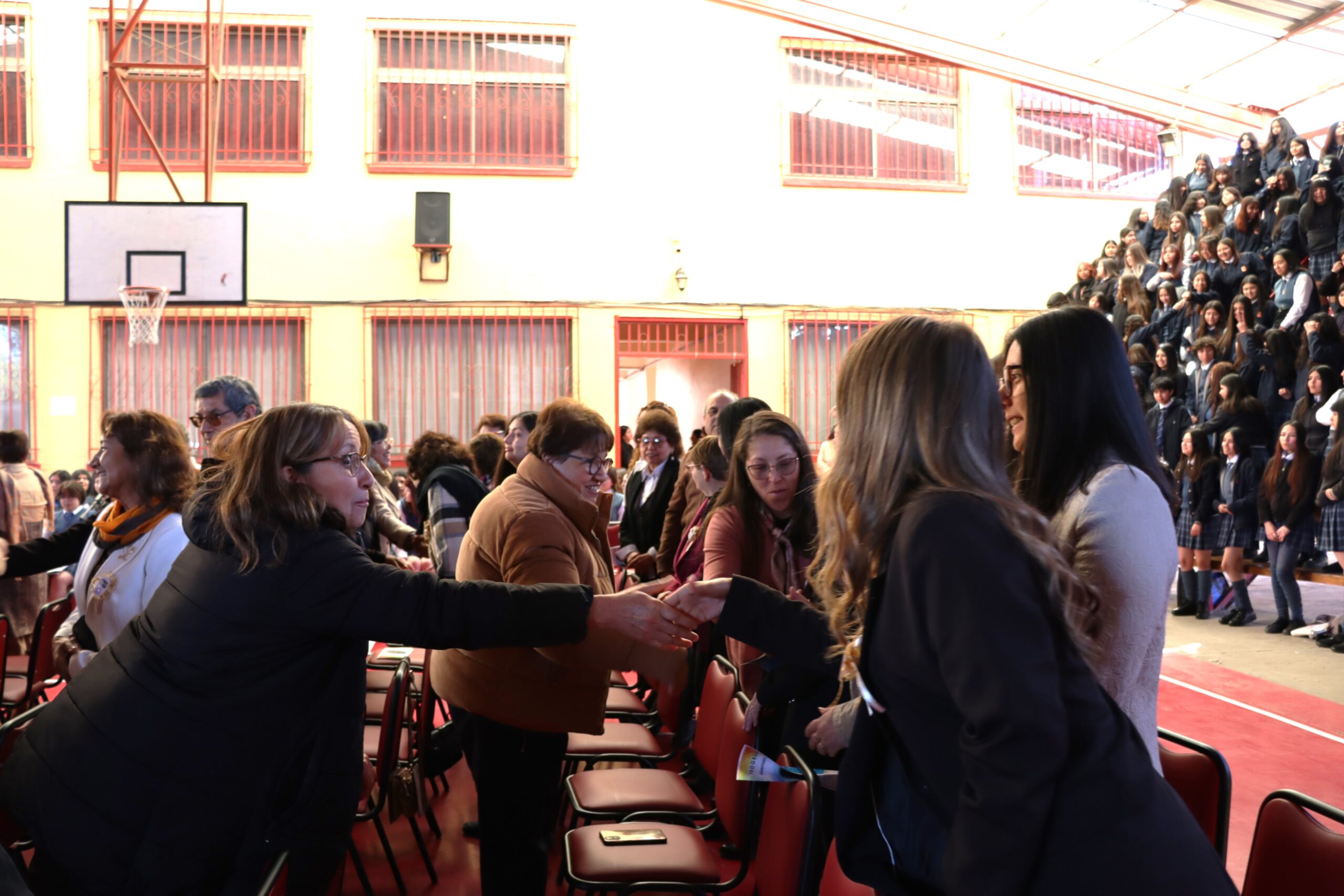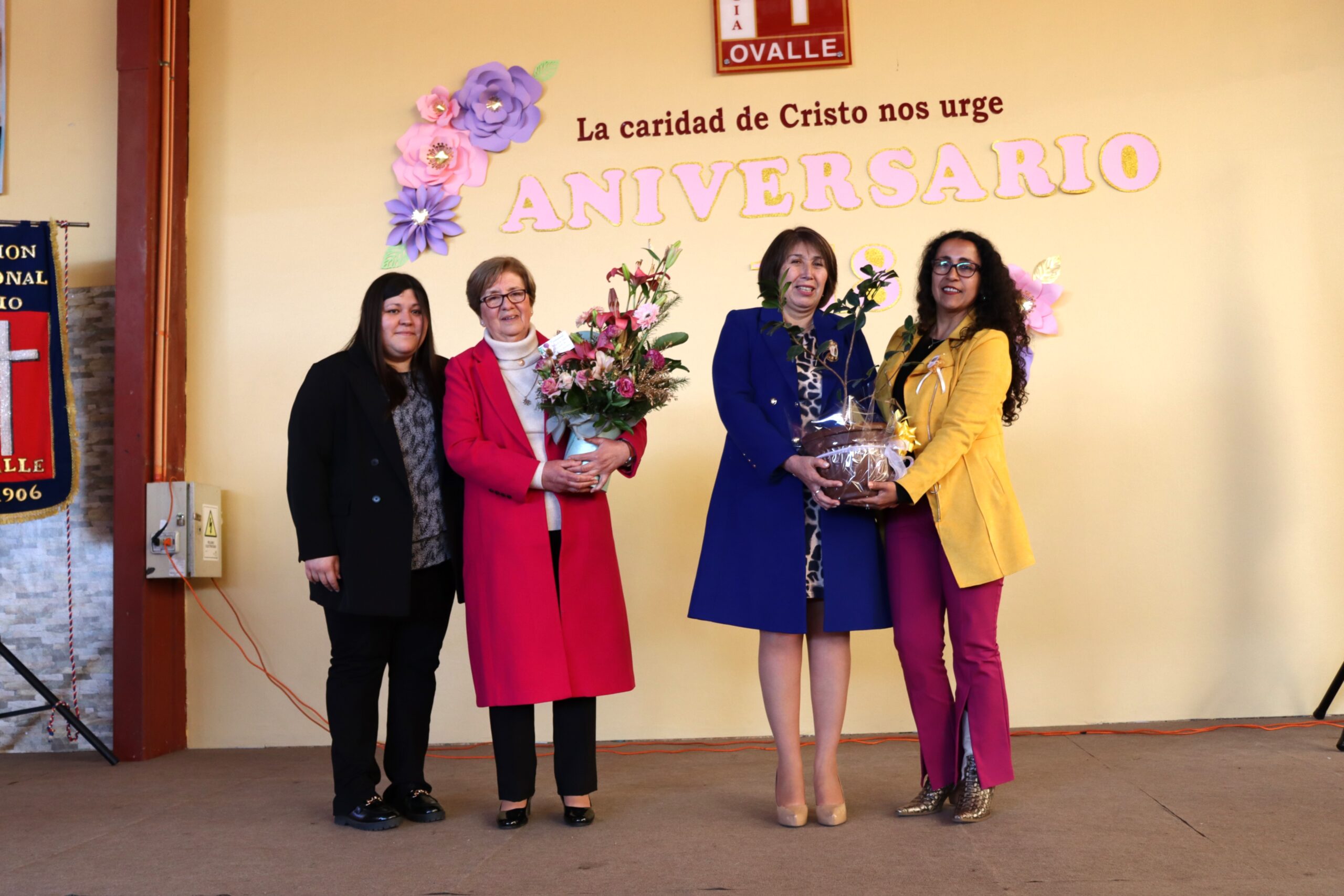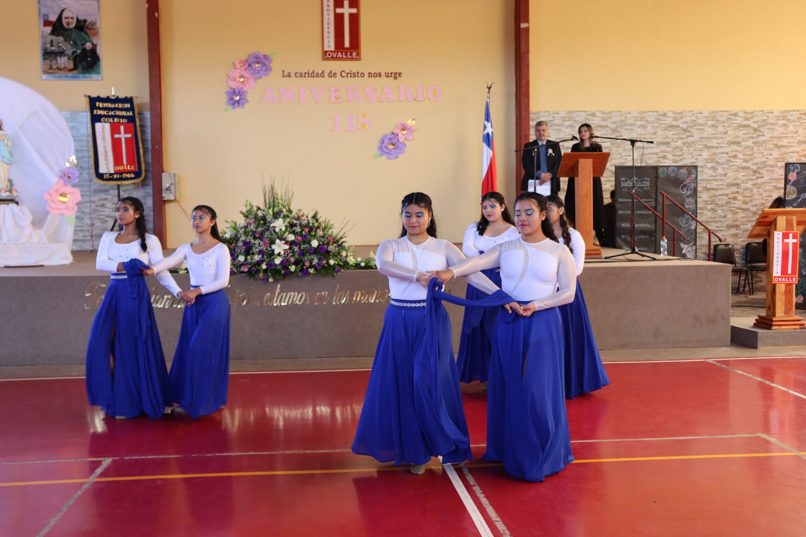 Al finalizar la Eucaristía, se dio inicio al acto conmemorativo de Aniversario, el cual contó con diversos números artísticos, como canto y baile, además del reconocimiento a los años de servicio de nuestros funcionarios, con el objetivo de fortalecerlos espacios laborales, destacando su profesionalismo, compromiso y dedicación en su larga trayectoria: Sra. Oriana Rivera con 45 años de servicio, Sra. Cecilia Leiva y Sra. Nelly García con 40 años, Sra. Silvia Urqueta con 35 años y Sra. María Véliz con 20 años de desempeño en torno a esta obra educativa plasmada con tan noble entrega en la educación de las jóvenes estudiantes.