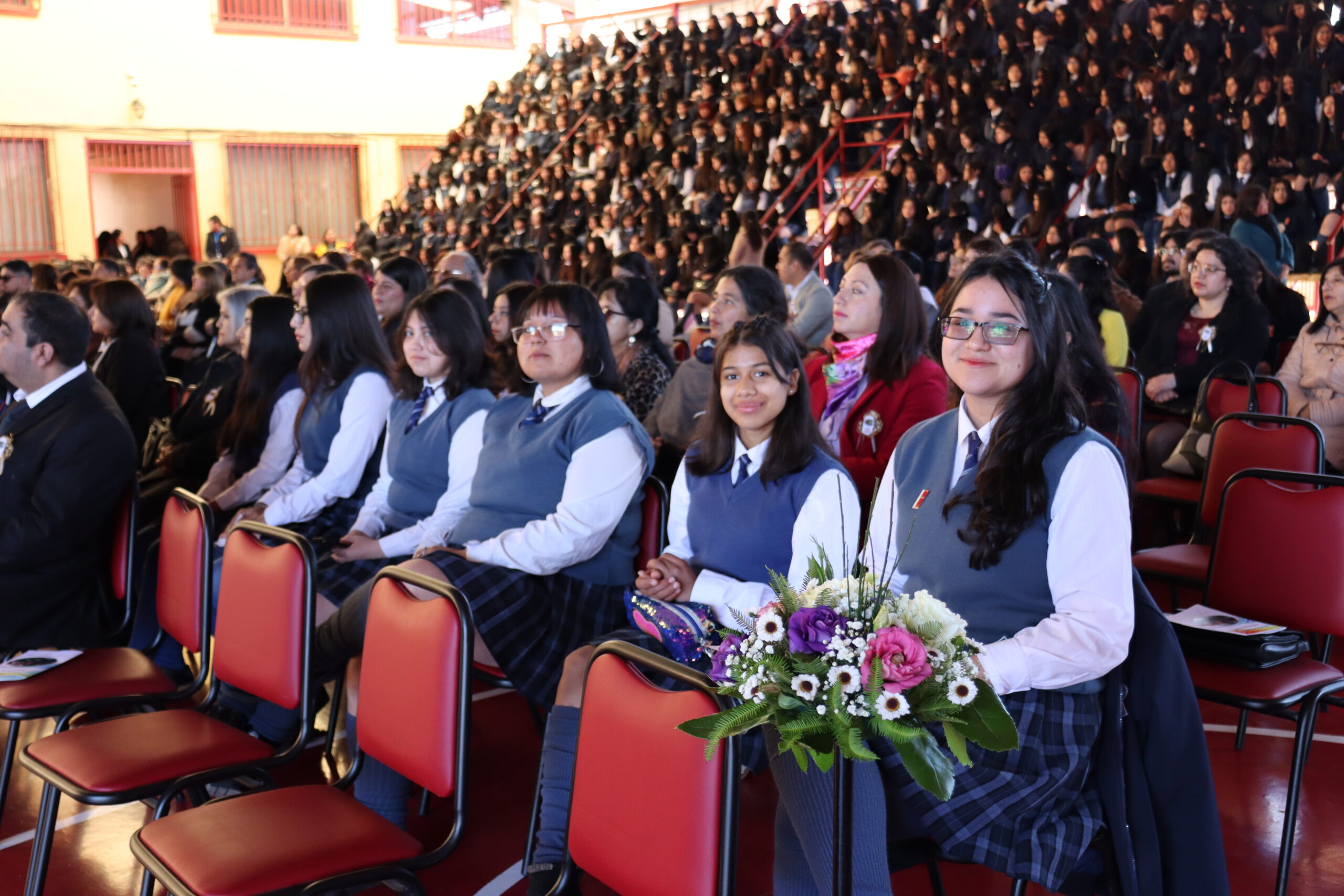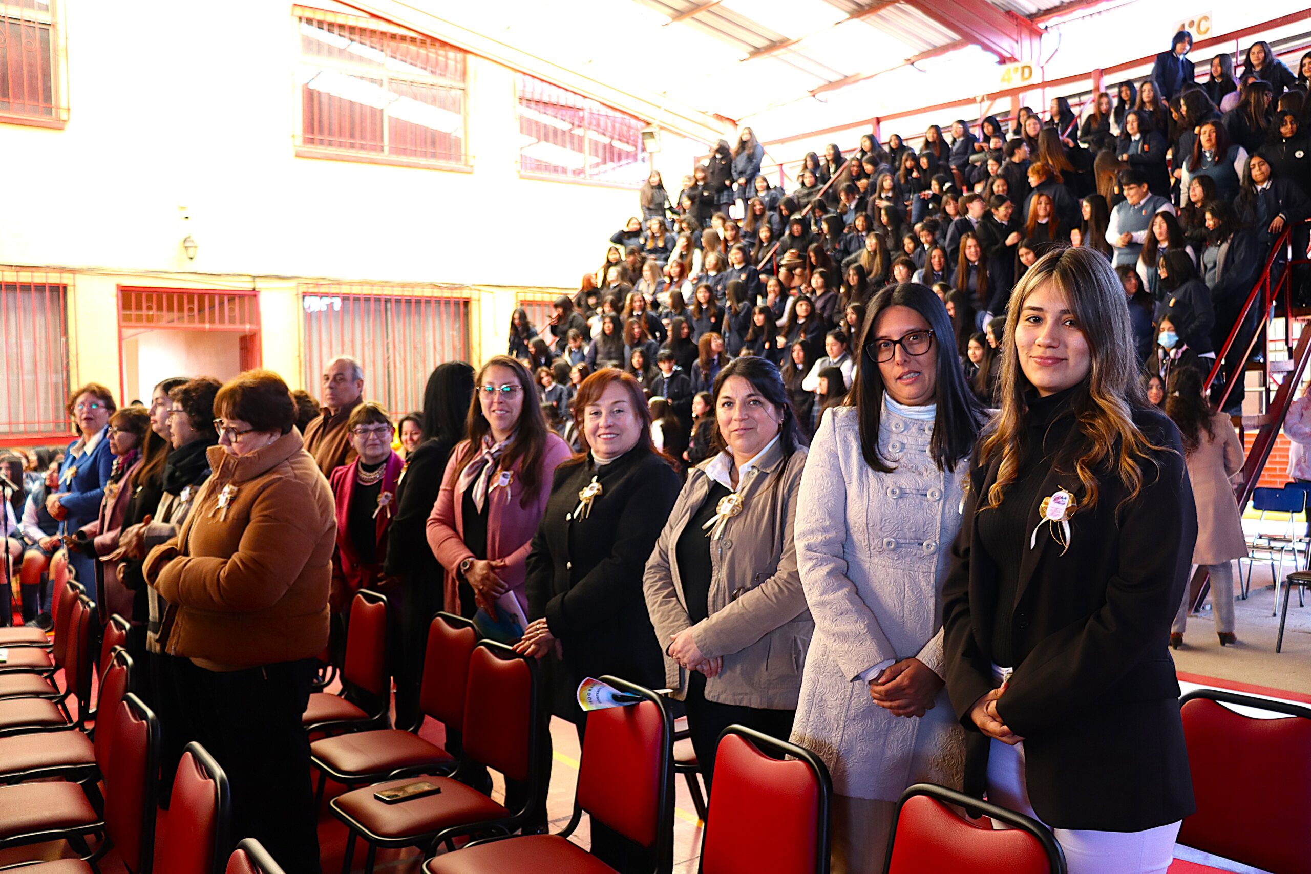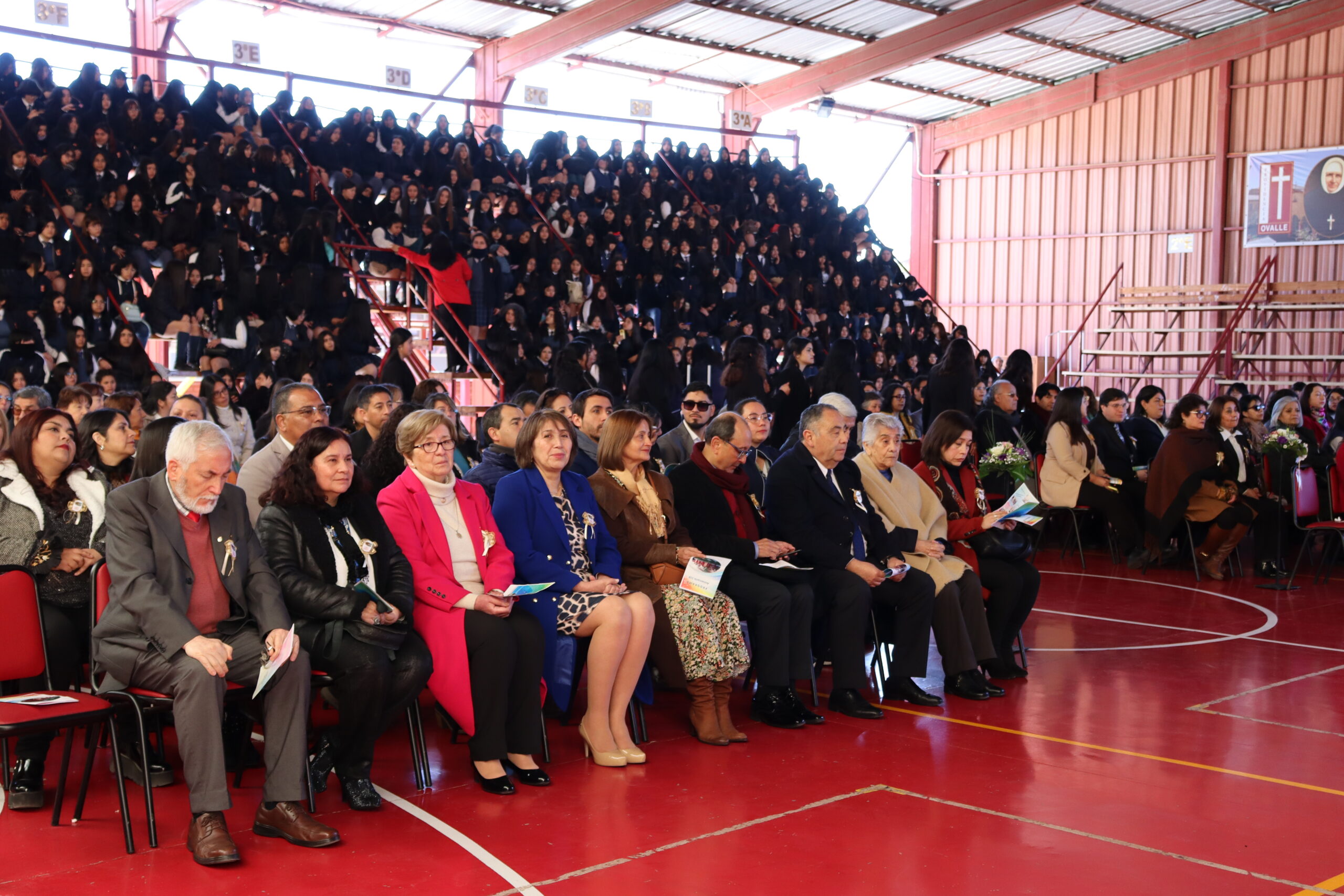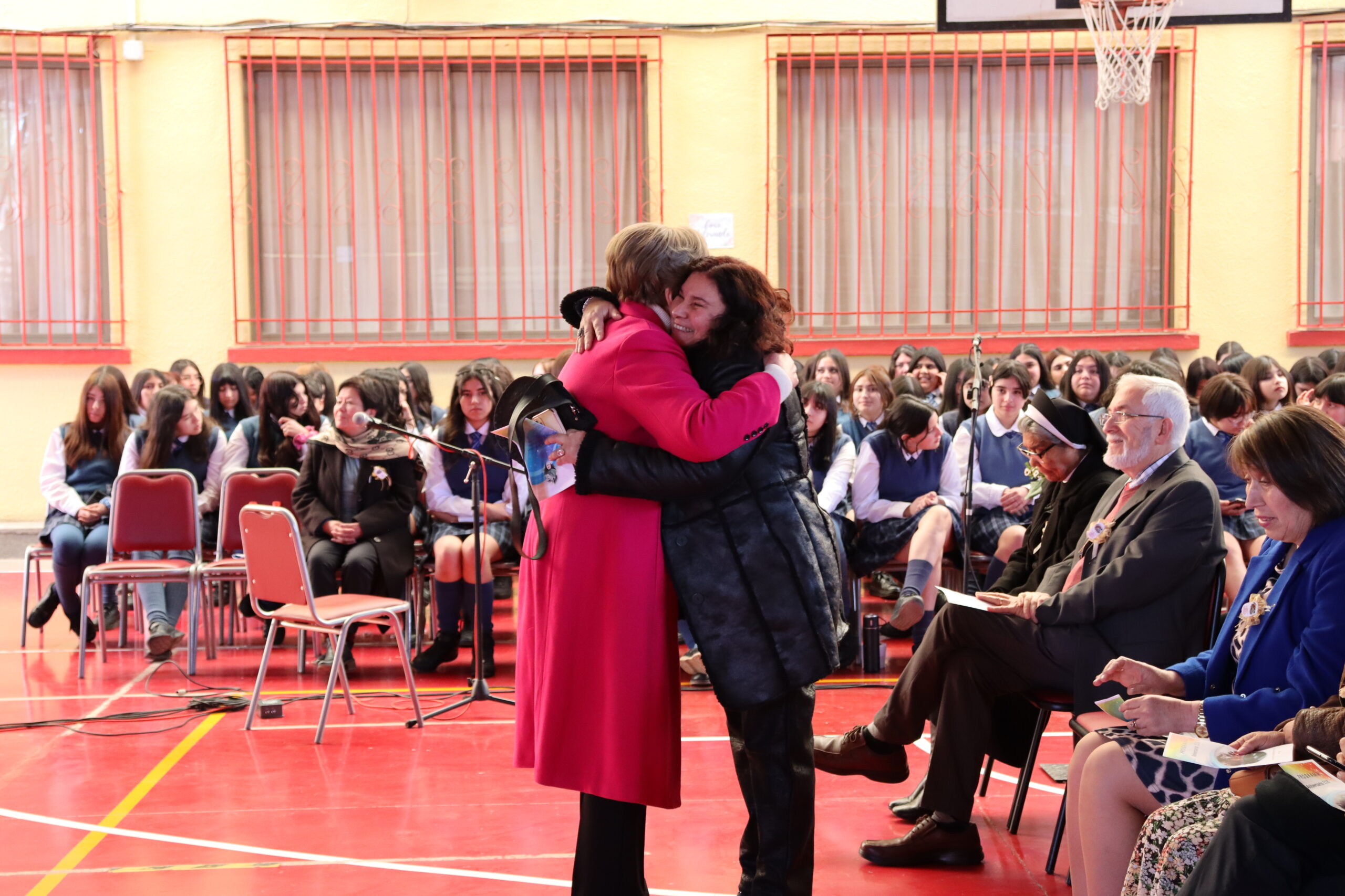 Al finalizar la Eucaristía, se dio inicio al acto conmemorativo de Aniversario, el cual contó con diversos números artísticos, como canto y baile, además del reconocimiento a los años de servicio de nuestros funcionarios, con el objetivo de fortalecerlos espacios laborales, destacando su profesionalismo, compromiso y dedicación en su larga trayectoria: Sra. Oriana Rivera con 45 años de servicio, Sra. Cecilia Leiva y Sra. Nelly García con 40 años, Sra. Silvia Urqueta con 35 años y Sra. María Véliz con 20 años de desempeño en torno a esta obra educativa plasmada con tan noble entrega en la educación de las jóvenes estudiantes.