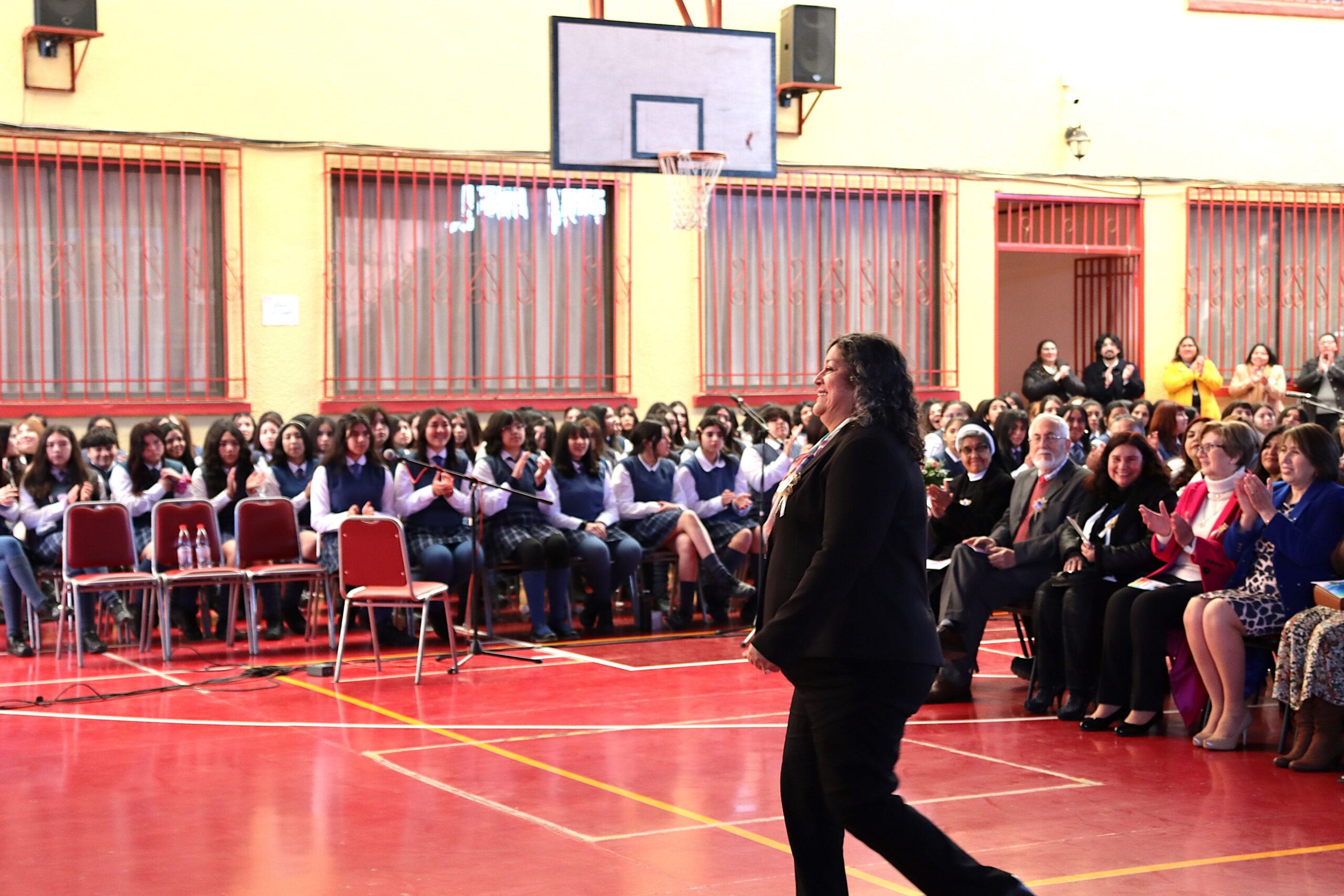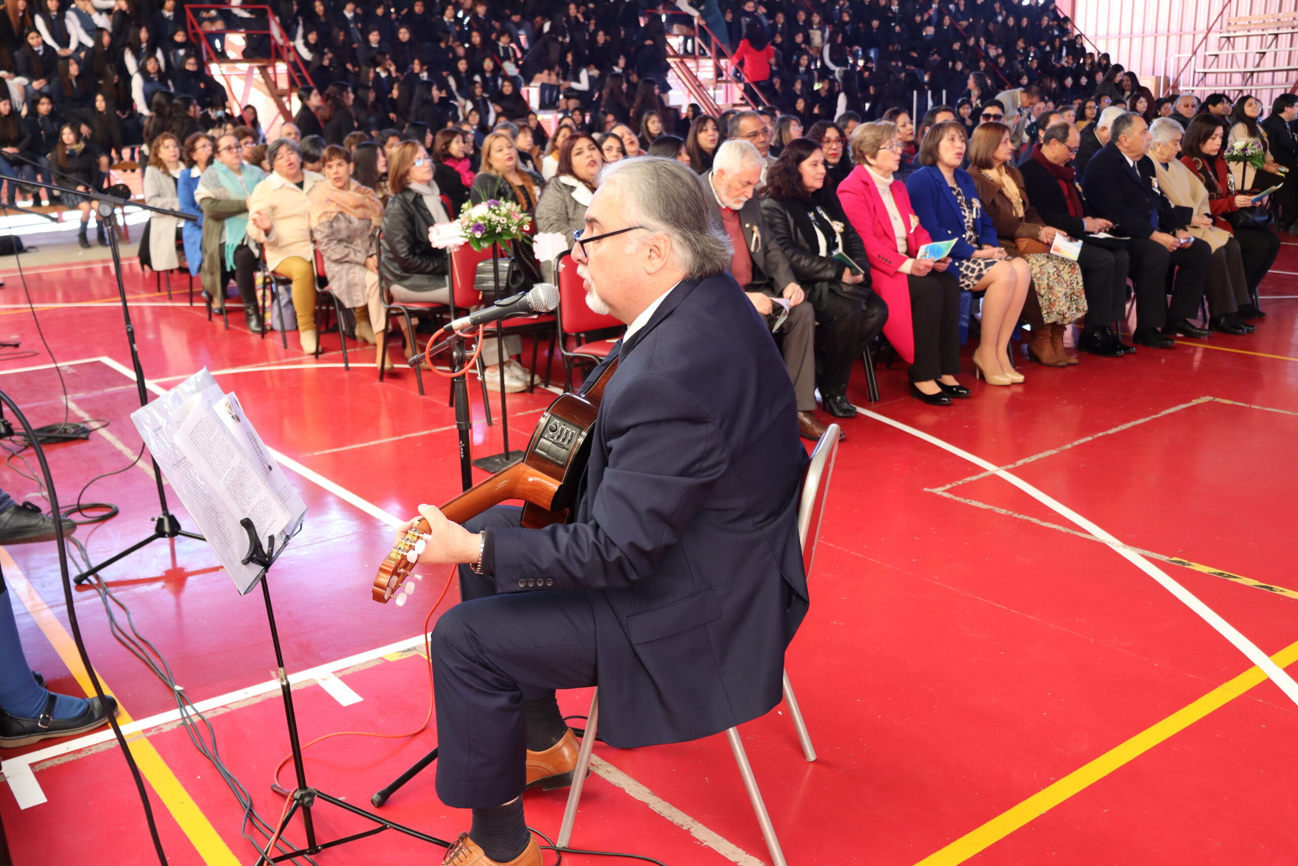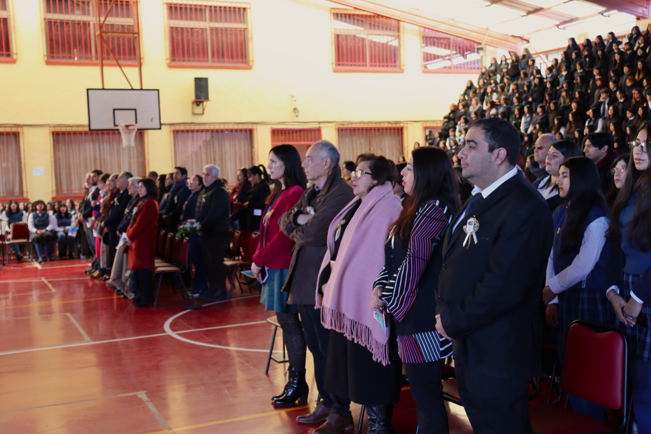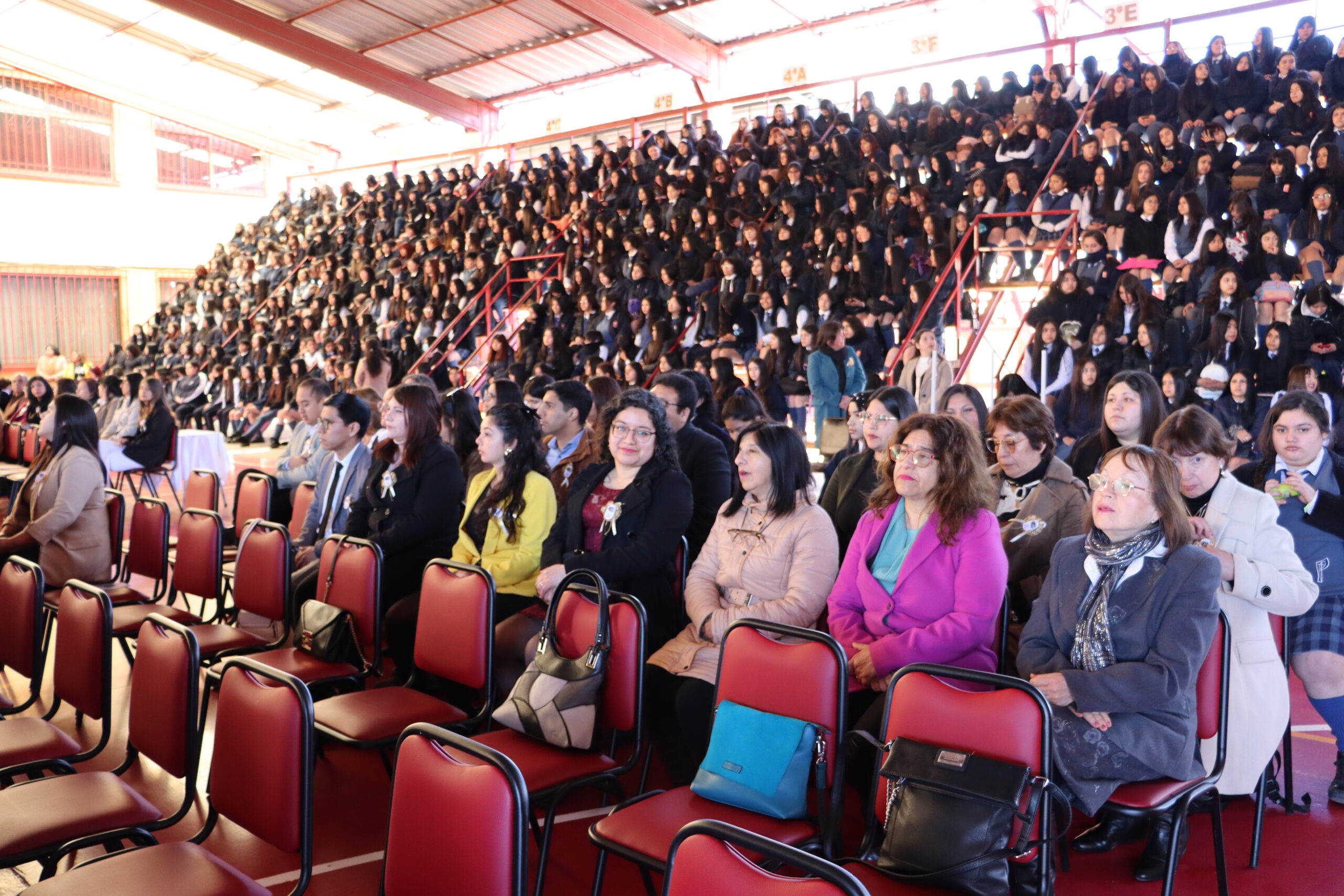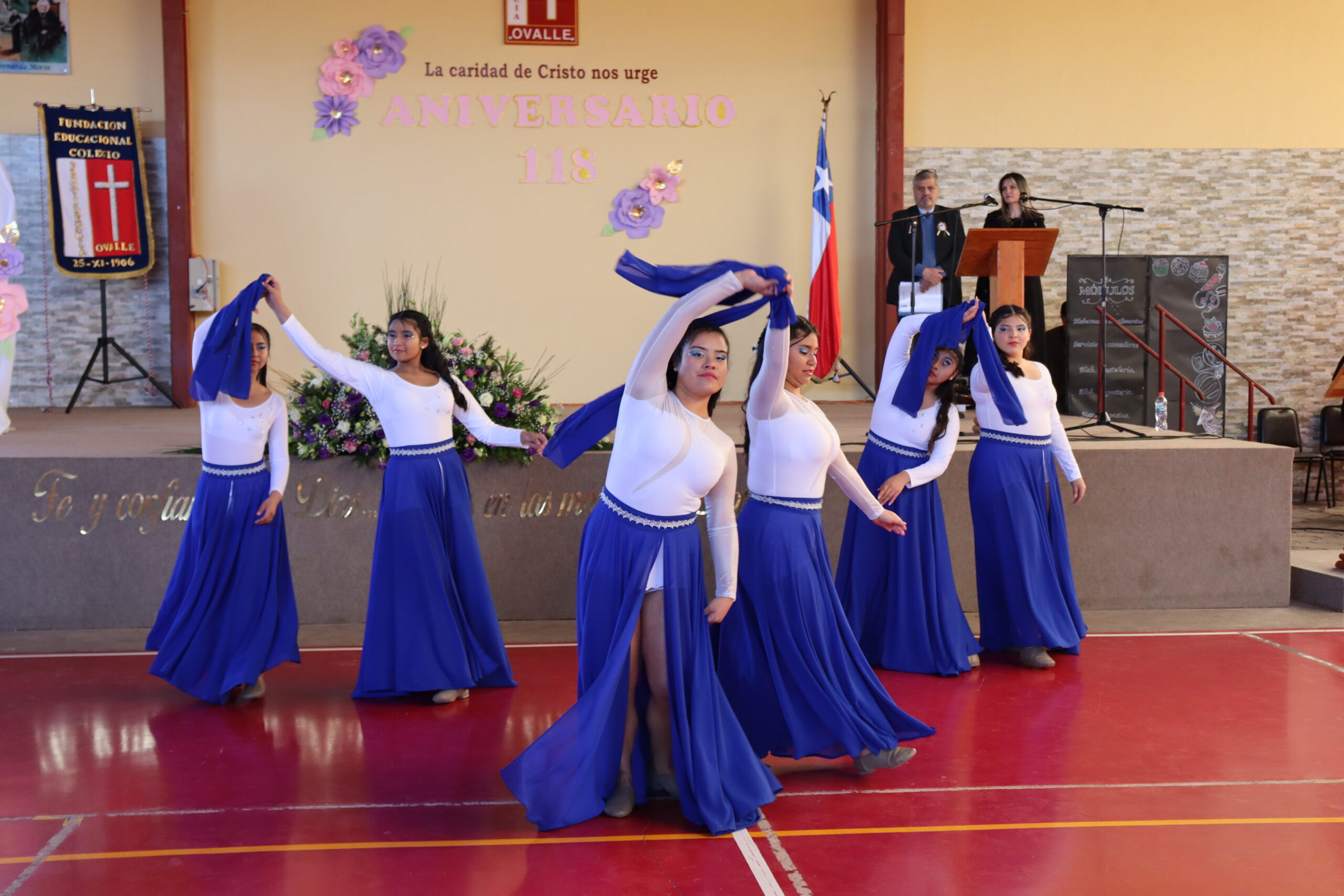 Al finalizar la Eucaristía, se dio inicio al acto conmemorativo de Aniversario, el cual contó con diversos números artísticos, como canto y baile, además del reconocimiento a los años de servicio de nuestros funcionarios, con el objetivo de fortalecerlos espacios laborales, destacando su profesionalismo, compromiso y dedicación en su larga trayectoria: Sra. Oriana Rivera con 45 años de servicio, Sra. Cecilia Leiva y Sra. Nelly García con 40 años, Sra. Silvia Urqueta con 35 años y Sra. María Véliz con 20 años de desempeño en torno a esta obra educativa plasmada con tan noble entrega en la educación de las jóvenes estudiantes.