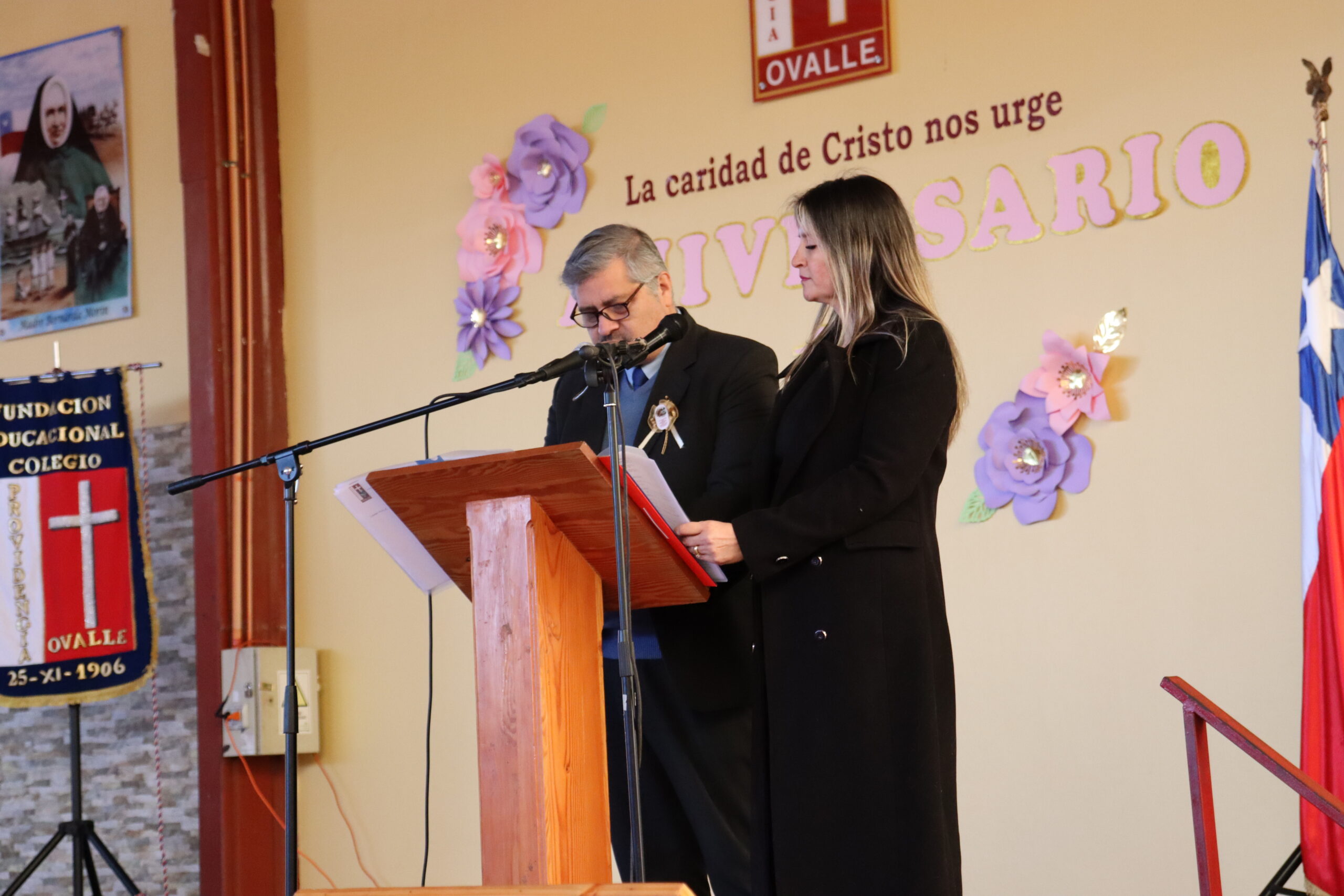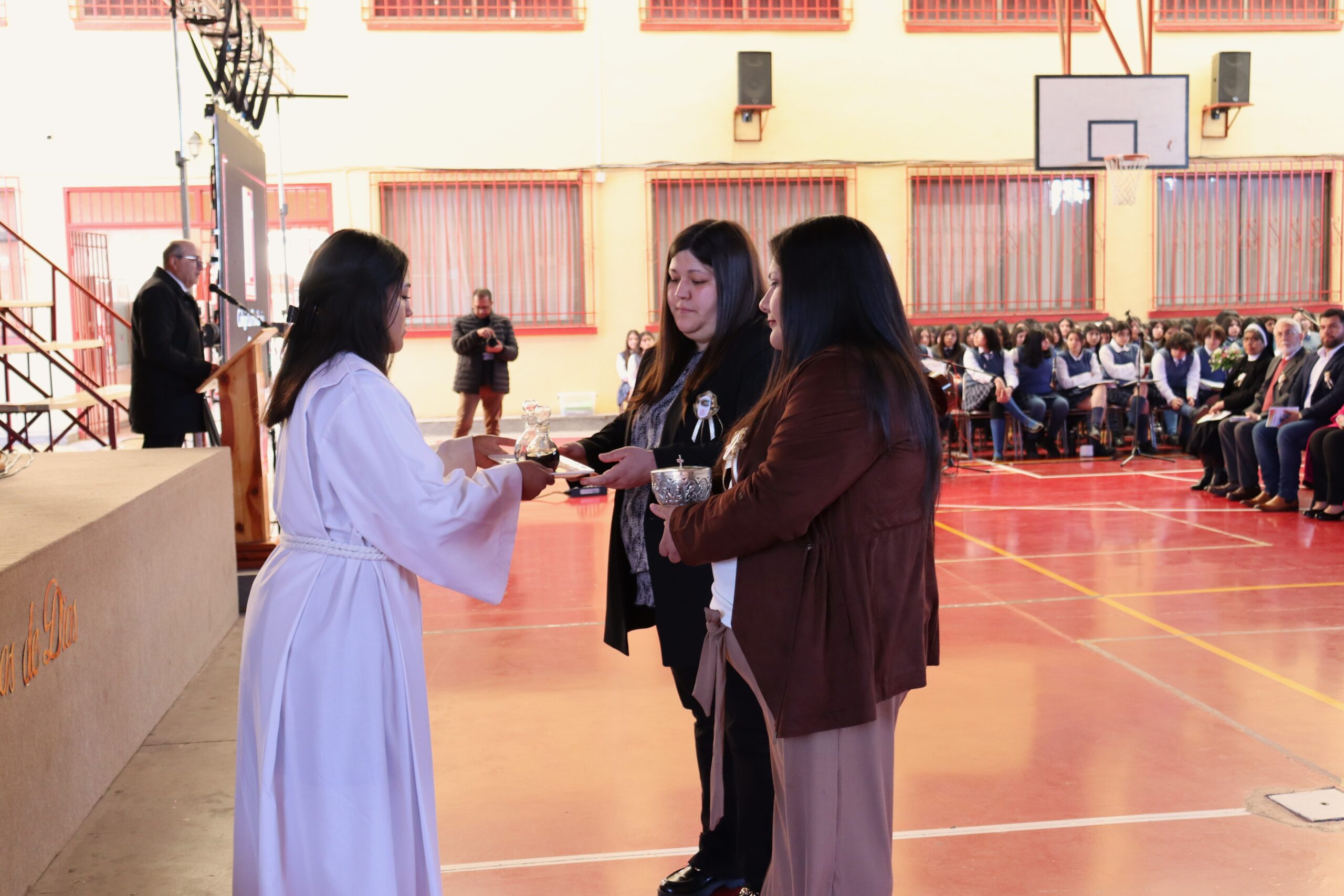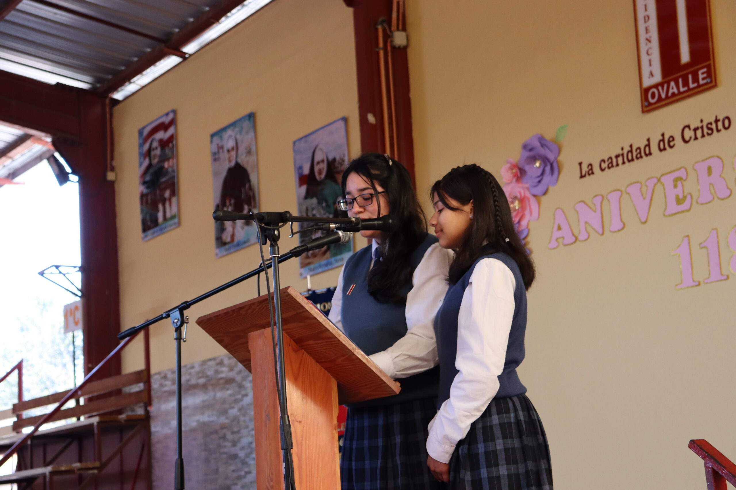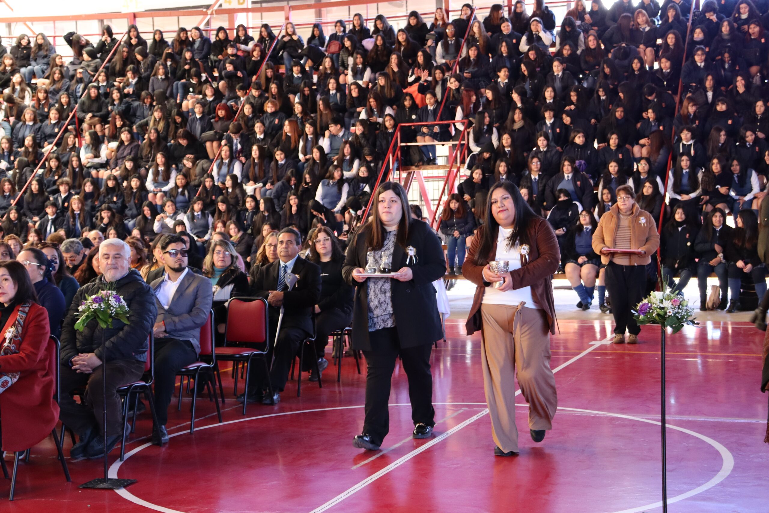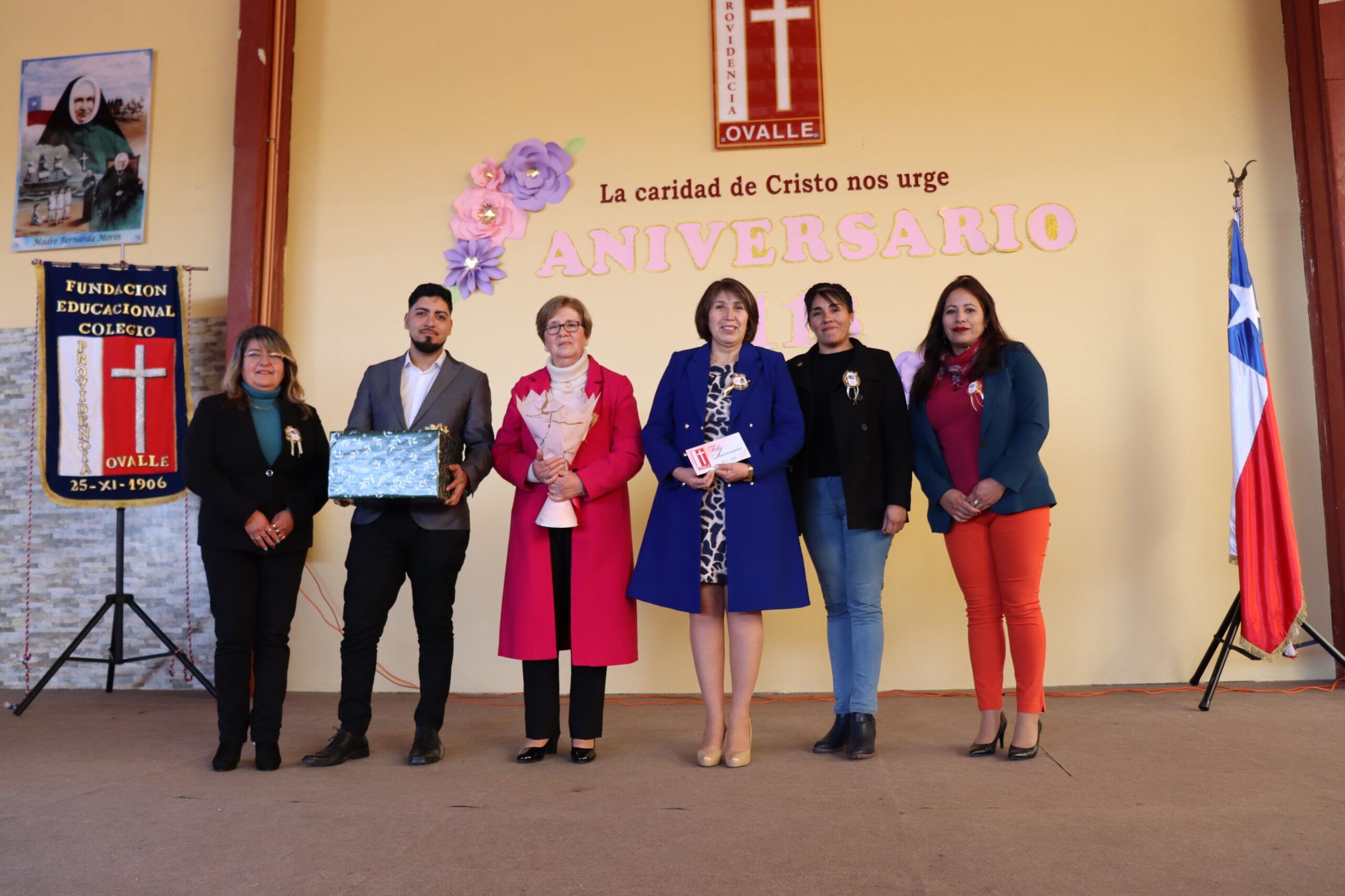 Al finalizar la Eucaristía, se dio inicio al acto conmemorativo de Aniversario, el cual contó con diversos números artísticos, como canto y baile, además del reconocimiento a los años de servicio de nuestros funcionarios, con el objetivo de fortalecerlos espacios laborales, destacando su profesionalismo, compromiso y dedicación en su larga trayectoria: Sra. Oriana Rivera con 45 años de servicio, Sra. Cecilia Leiva y Sra. Nelly García con 40 años, Sra. Silvia Urqueta con 35 años y Sra. María Véliz con 20 años de desempeño en torno a esta obra educativa plasmada con tan noble entrega en la educación de las jóvenes estudiantes.