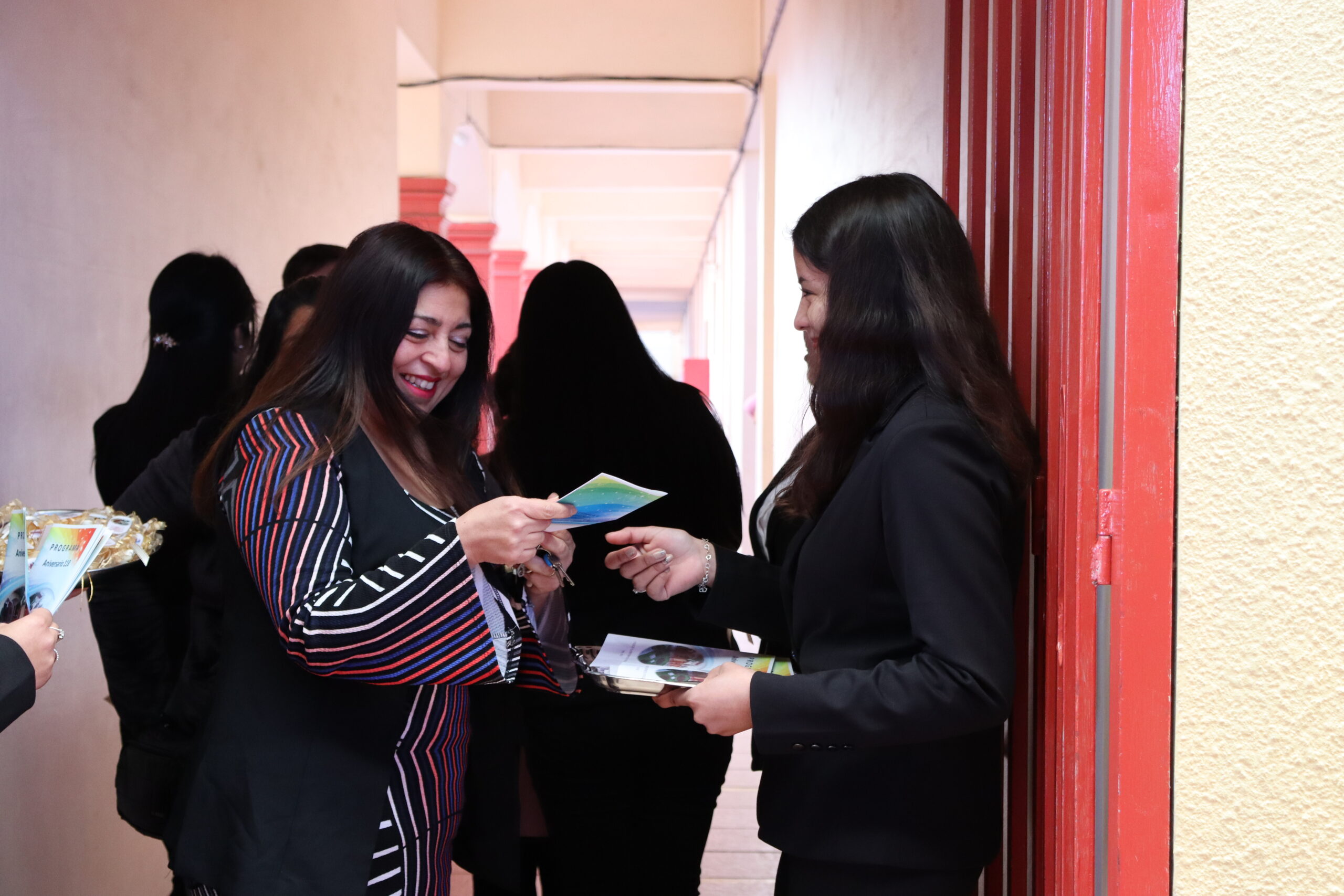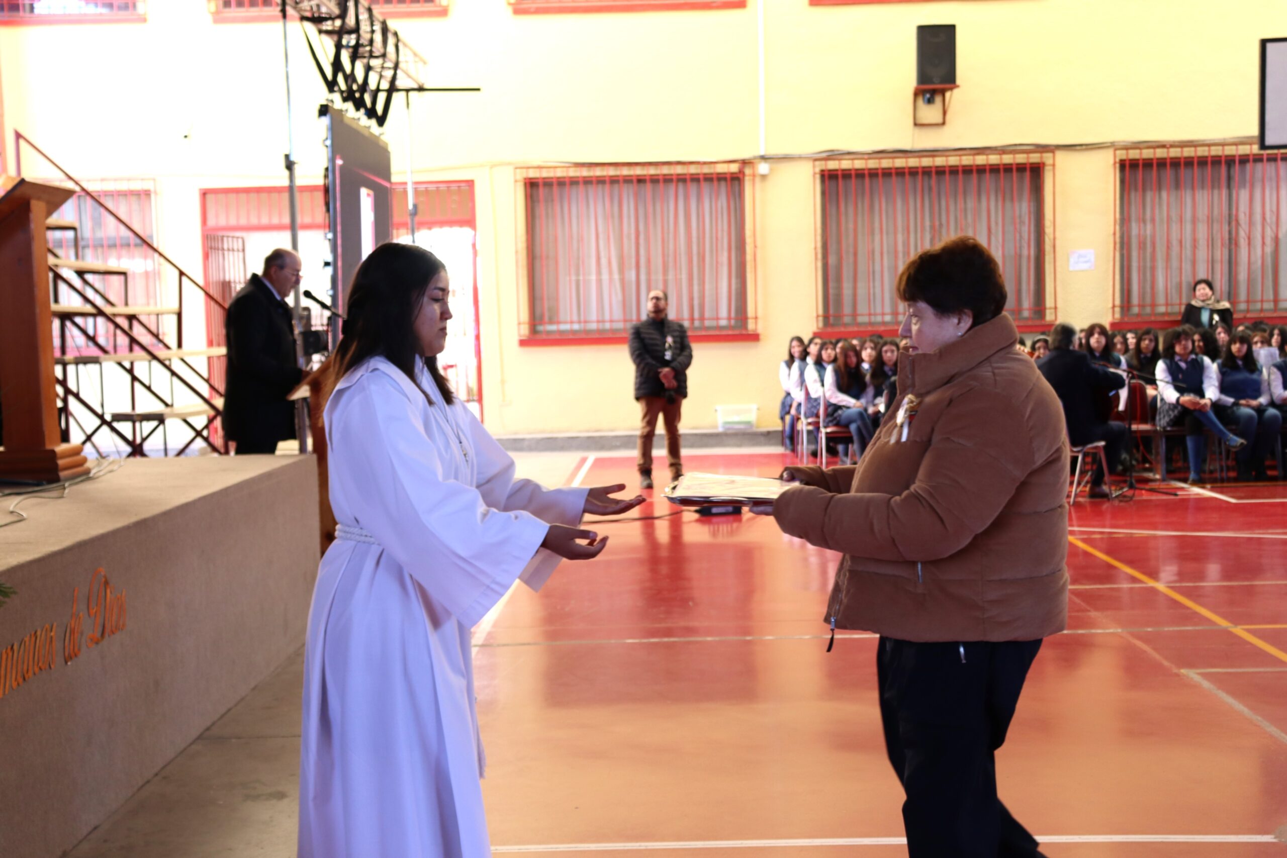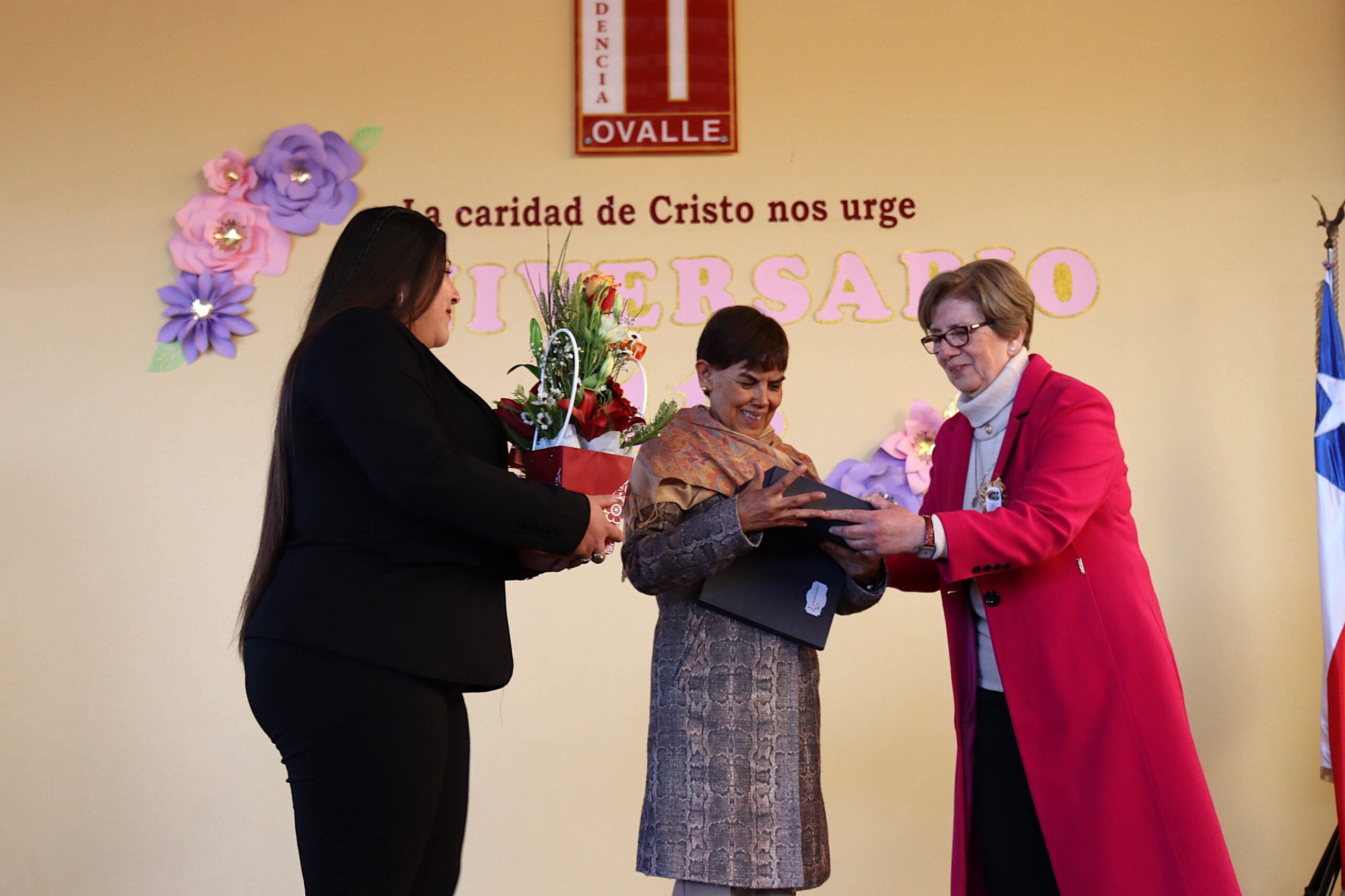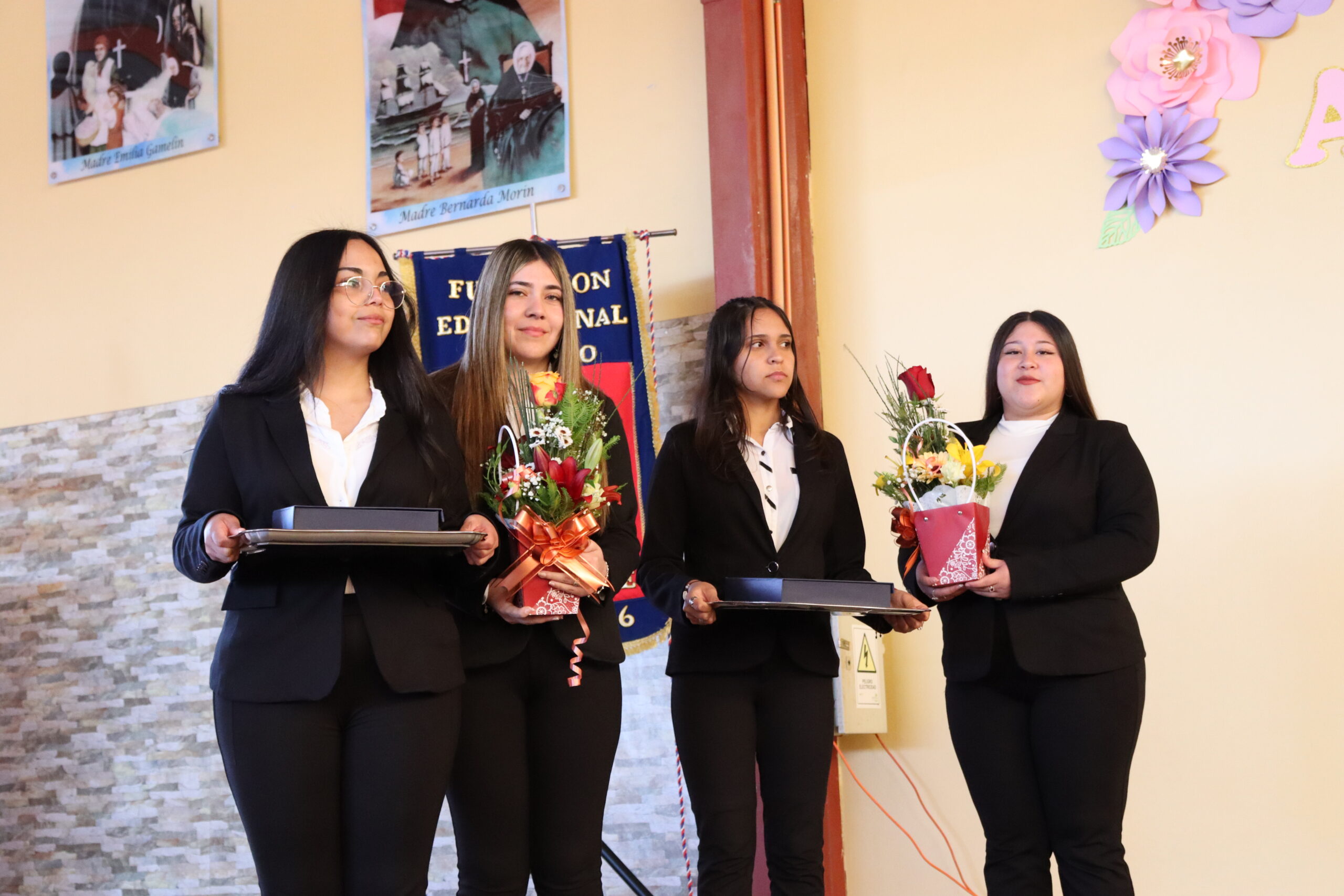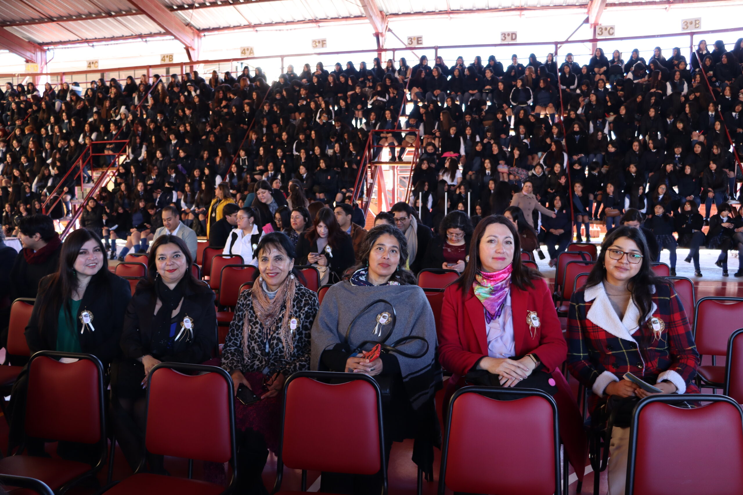 Al finalizar la Eucaristía, se dio inicio al acto conmemorativo de Aniversario, el cual contó con diversos números artísticos, como canto y baile, además del reconocimiento a los años de servicio de nuestros funcionarios, con el objetivo de fortalecerlos espacios laborales, destacando su profesionalismo, compromiso y dedicación en su larga trayectoria: Sra. Oriana Rivera con 45 años de servicio, Sra. Cecilia Leiva y Sra. Nelly García con 40 años, Sra. Silvia Urqueta con 35 años y Sra. María Véliz con 20 años de desempeño en torno a esta obra educativa plasmada con tan noble entrega en la educación de las jóvenes estudiantes.