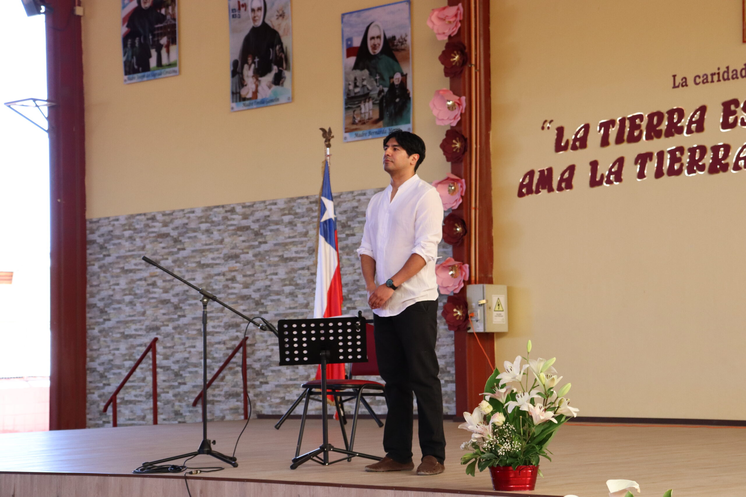 Durante el acto la academia audiovisual preparó un video donde se evidenció el trabajo y las acciones realizadas por el comité de medio ambiente, compuesto por las docentes: Paola Olivares, Sharon Castro y Shirley Bruna, junto a las 24 estudiantes, delegadas de Medio Ambiente, representantes de cada uno de los cursos. En esta ceremonia, la academia brindó emoción y elegancia, deleitando los presentes con un baile de la canción “Gracias a la Vida”. Sumando prodigiosidad, habilidad y destreza, el profesor de música Oscar García realizó una perfecta interpretación musical junto a su guitarra, cautivando al público, transportando arte y cultura musical.