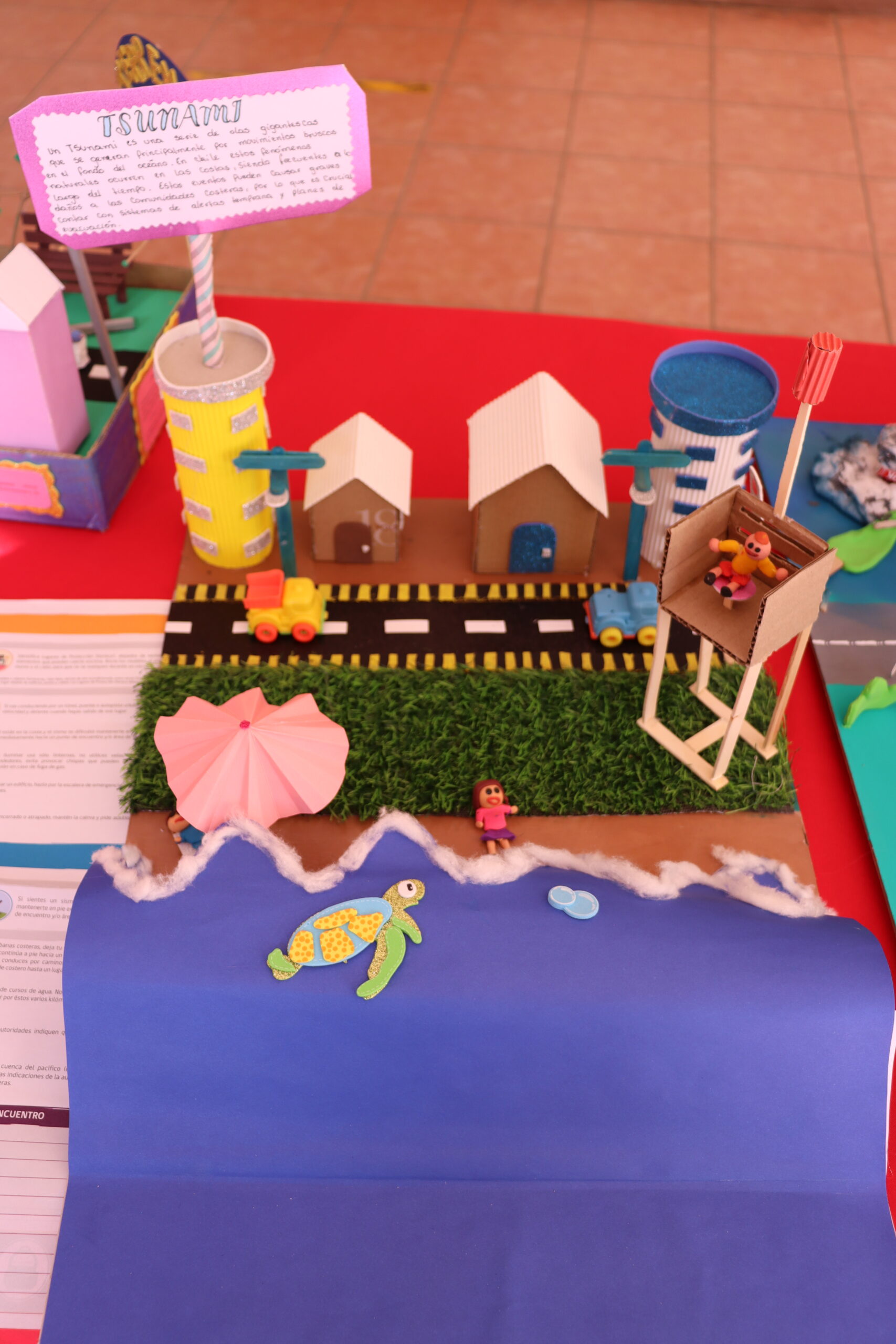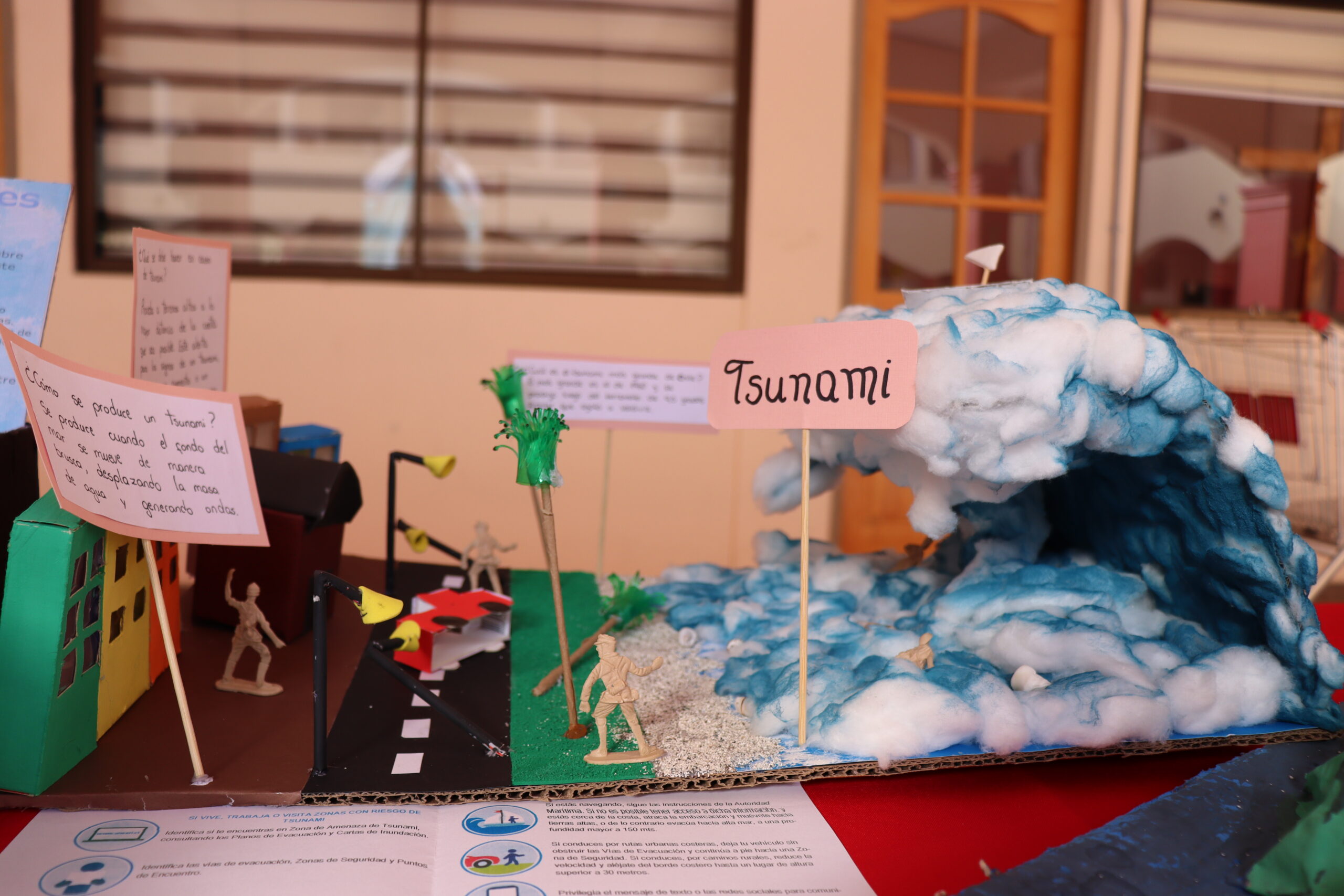 Durante el recreo del pasado jueves 21 de noviembre se realizó una exposición de maquetas sobre tipos de desastres naturales trabajadas en la asignatura de Ciencias para la ciudadanía con material reciclado, de la Unidad: Prevención, Seguridad y Autocuidado, las cuales fueron presentadas por las docentes Paola Olivares y Sharon Castro.
