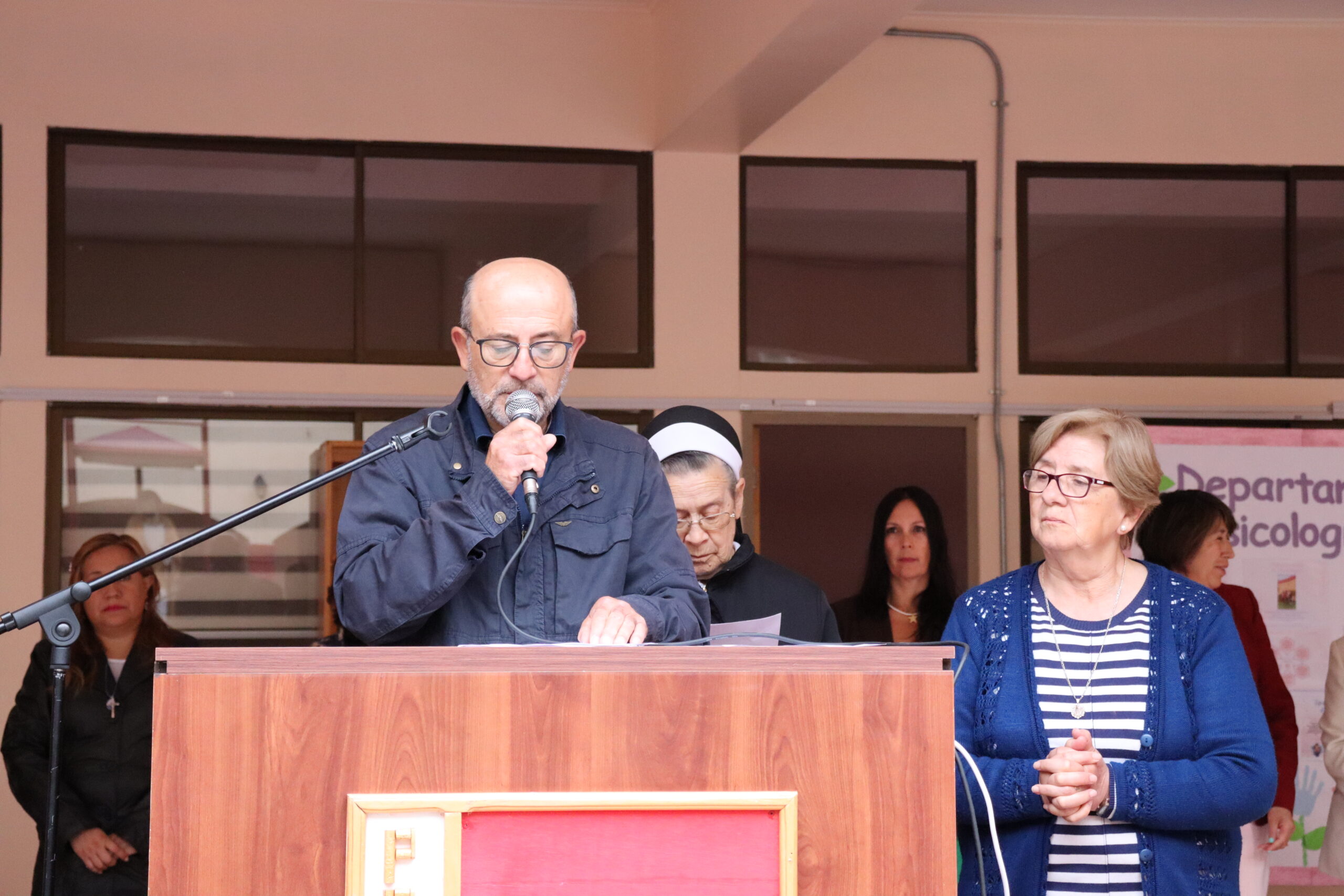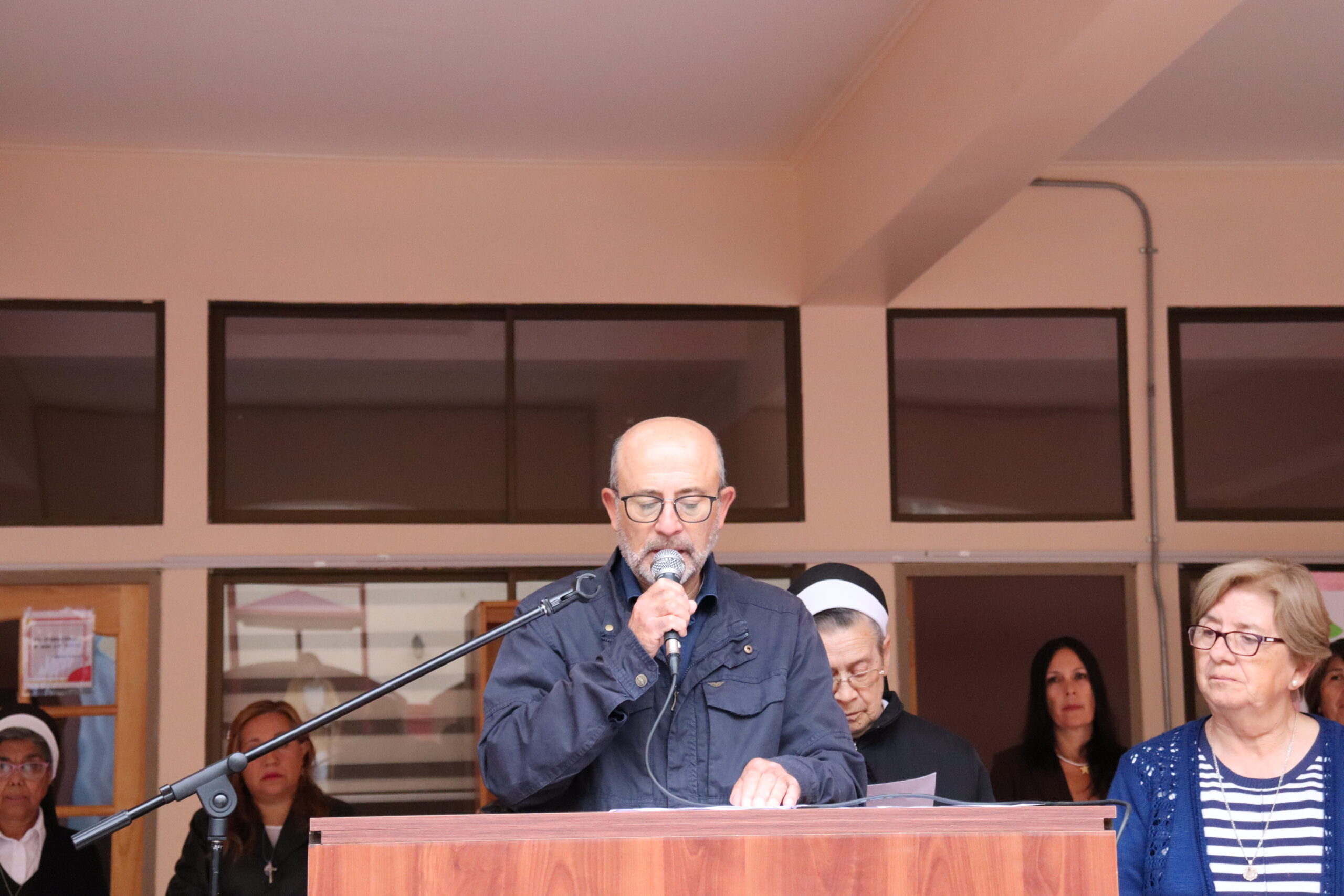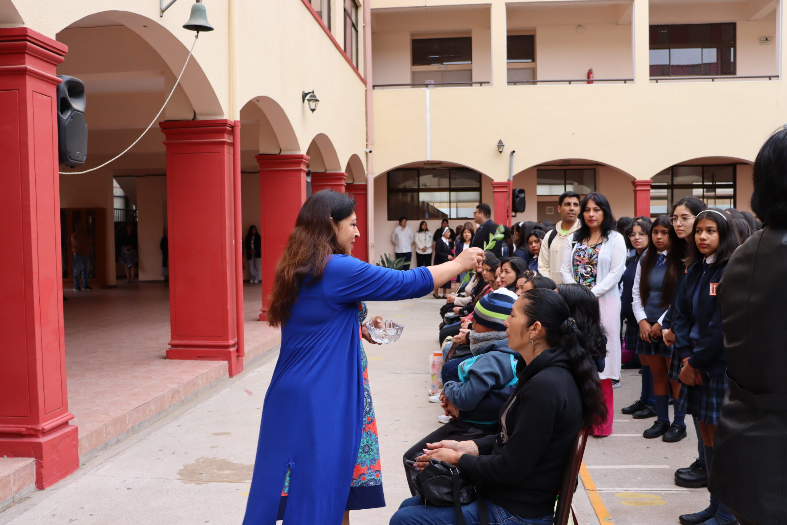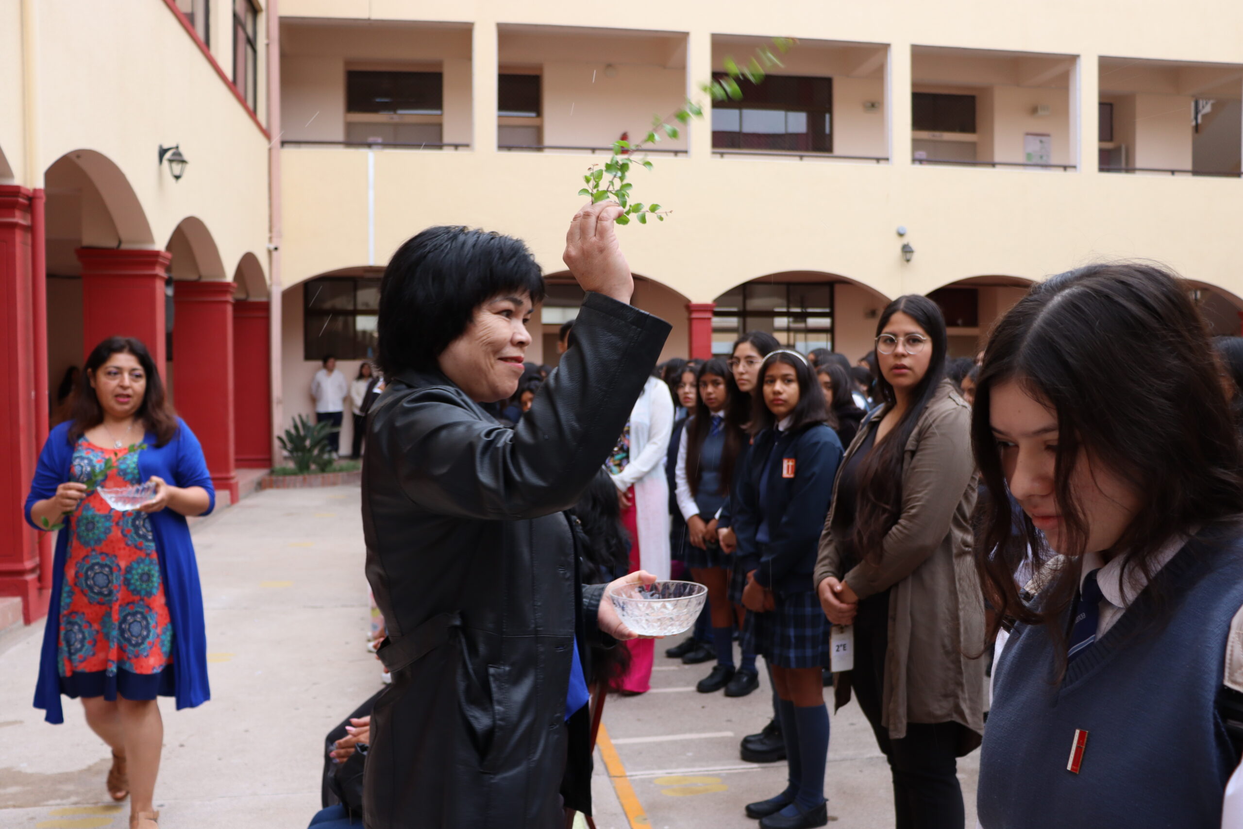 El día 29 de febrero, nos reunimos para la bendición y fue la Hermana Rebeca Malhue, presidenta de la fundación educacional junto a la Herman Elvira Letelier quienes entregaron el agua bendita y olivo para la bendición de toda la comunidad estudiantil, que contemplaba; equipos directivo, de gestión, docentes, asistentes de la educación, estudiantes y padres y/o apoderados, quienes nos acompañaron en la oración durante la formación del patio San José.