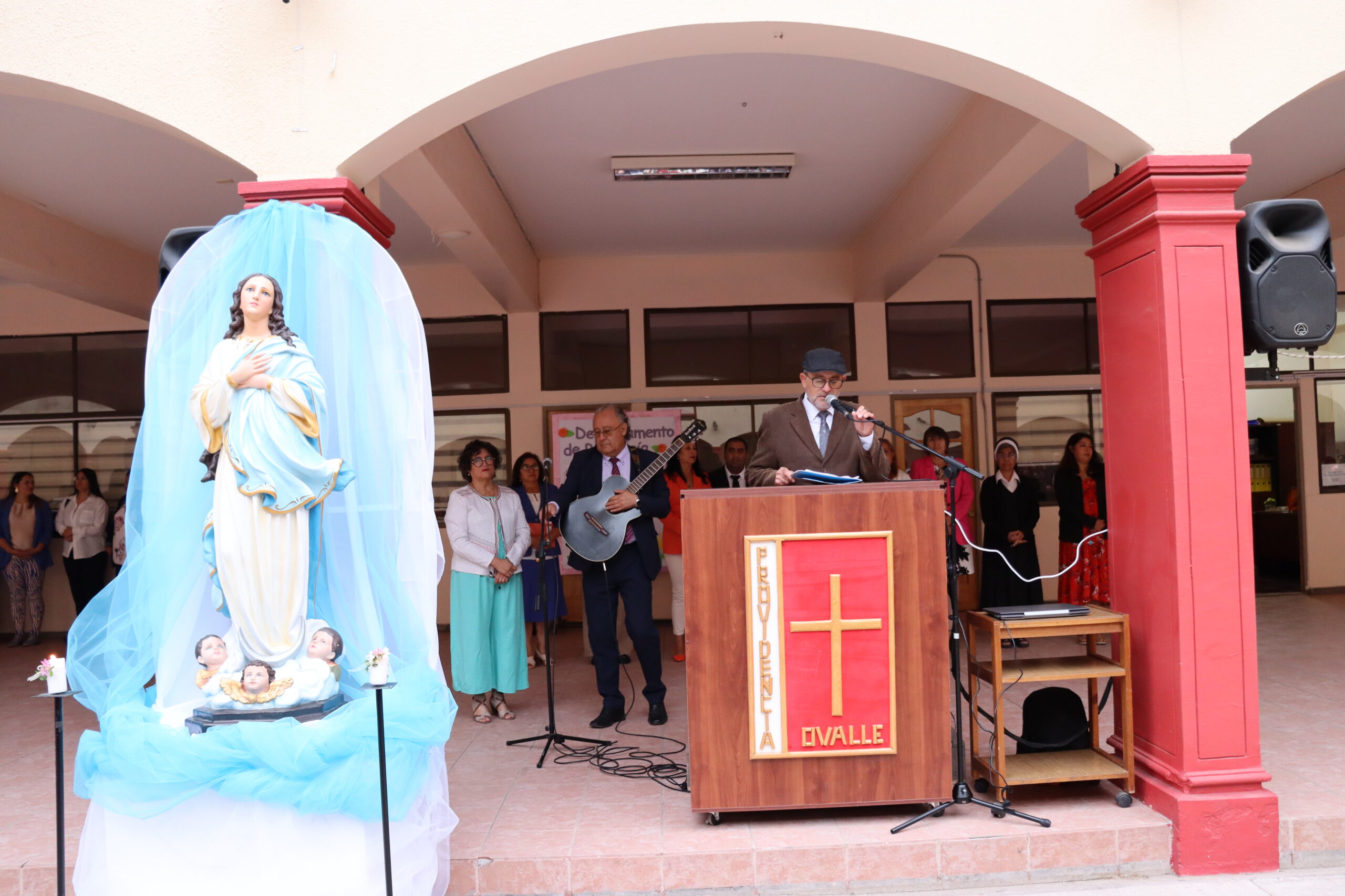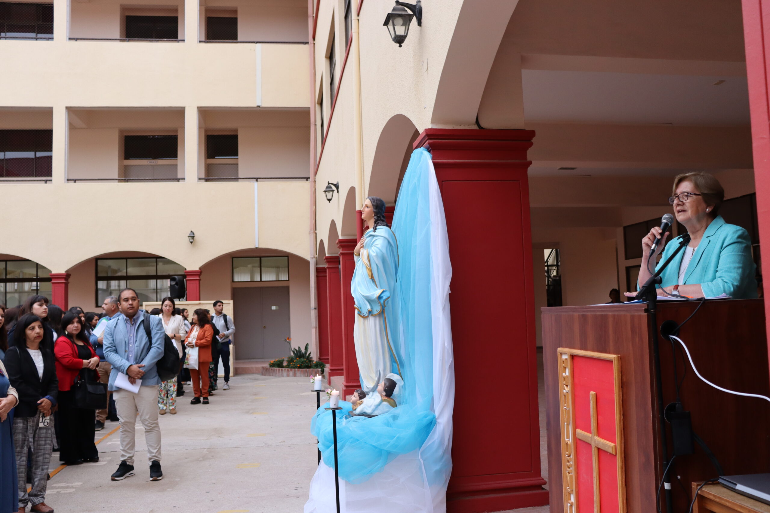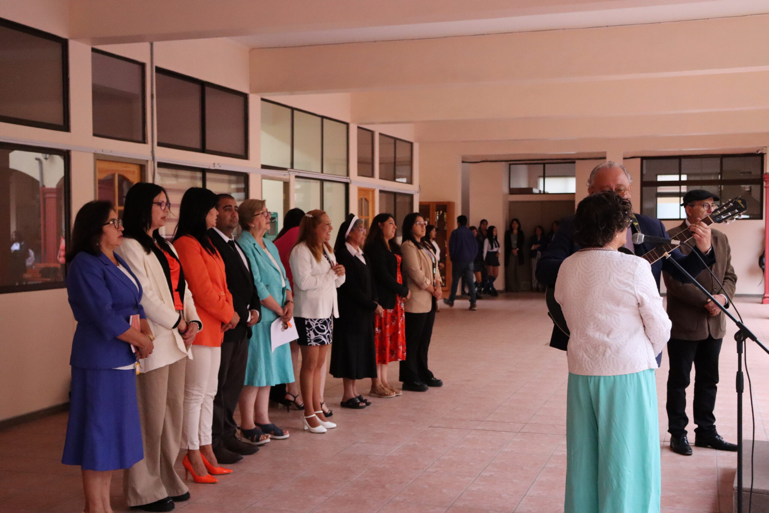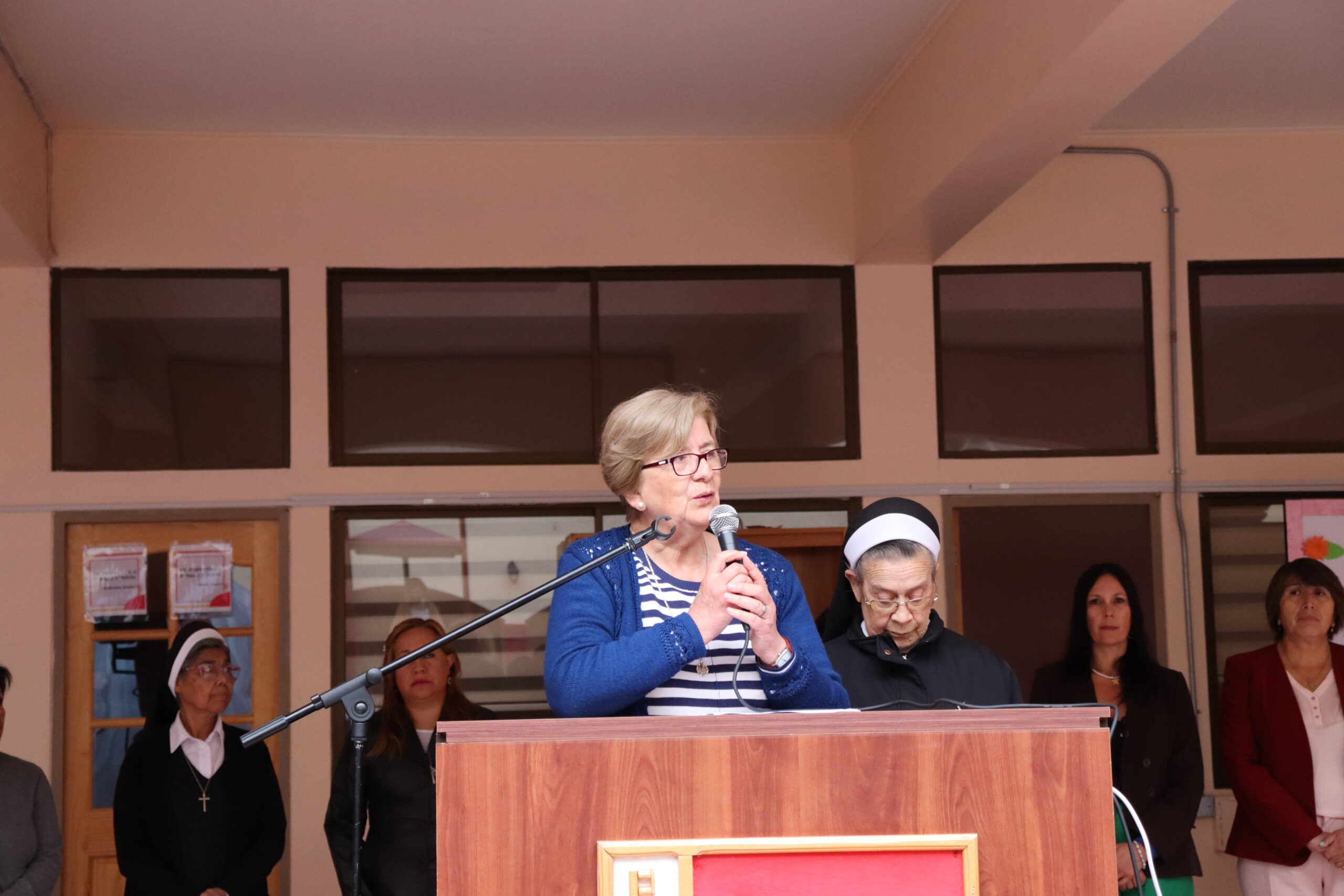 El día 29 de febrero, nos reunimos para la bendición y fue la Hermana Rebeca Malhue, presidenta de la fundación educacional junto a la Herman Elvira Letelier quienes entregaron el agua bendita y olivo para la bendición de toda la comunidad estudiantil, que contemplaba; equipos directivo, de gestión, docentes, asistentes de la educación, estudiantes y padres y/o apoderados, quienes nos acompañaron en la oración durante la formación del patio San José.