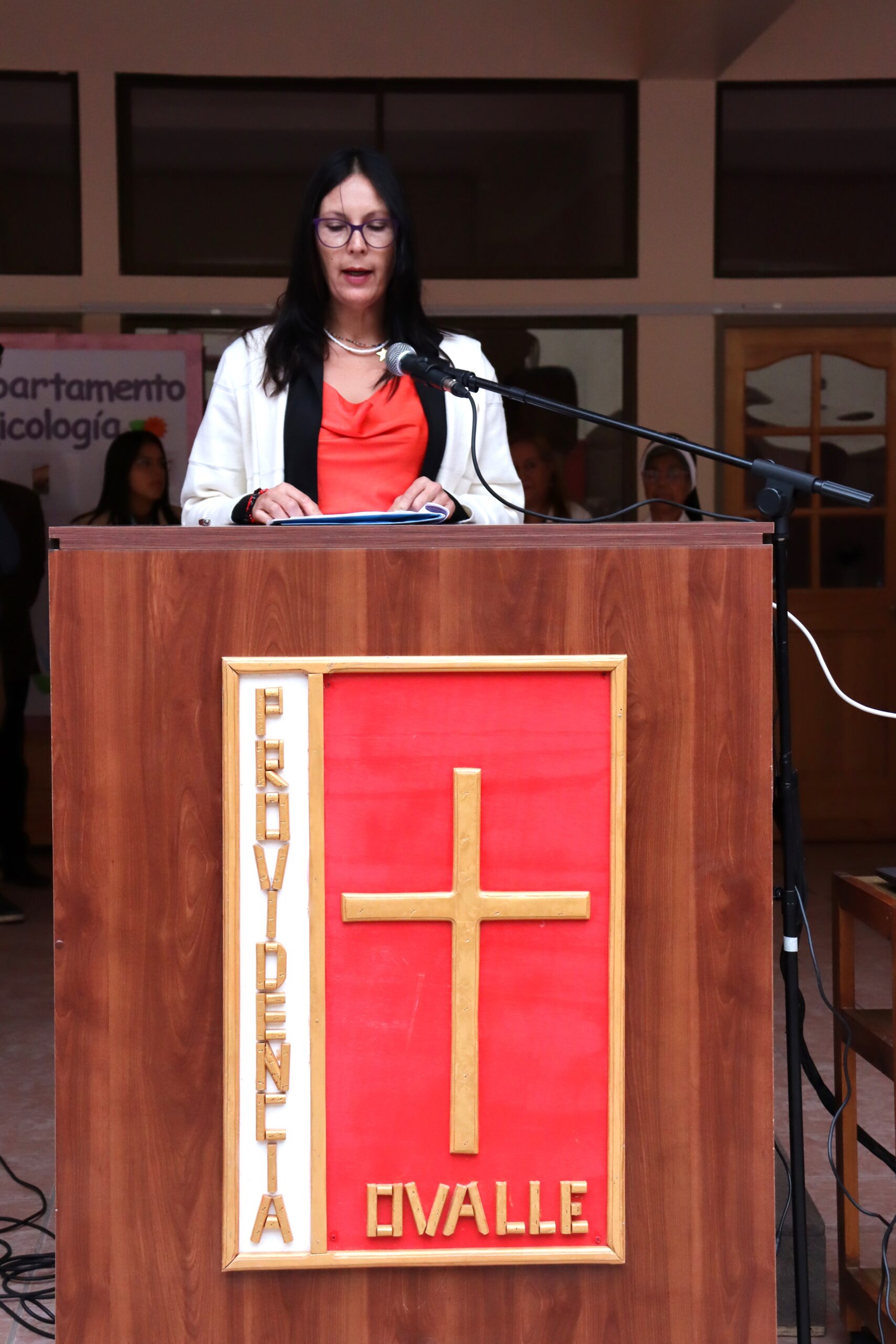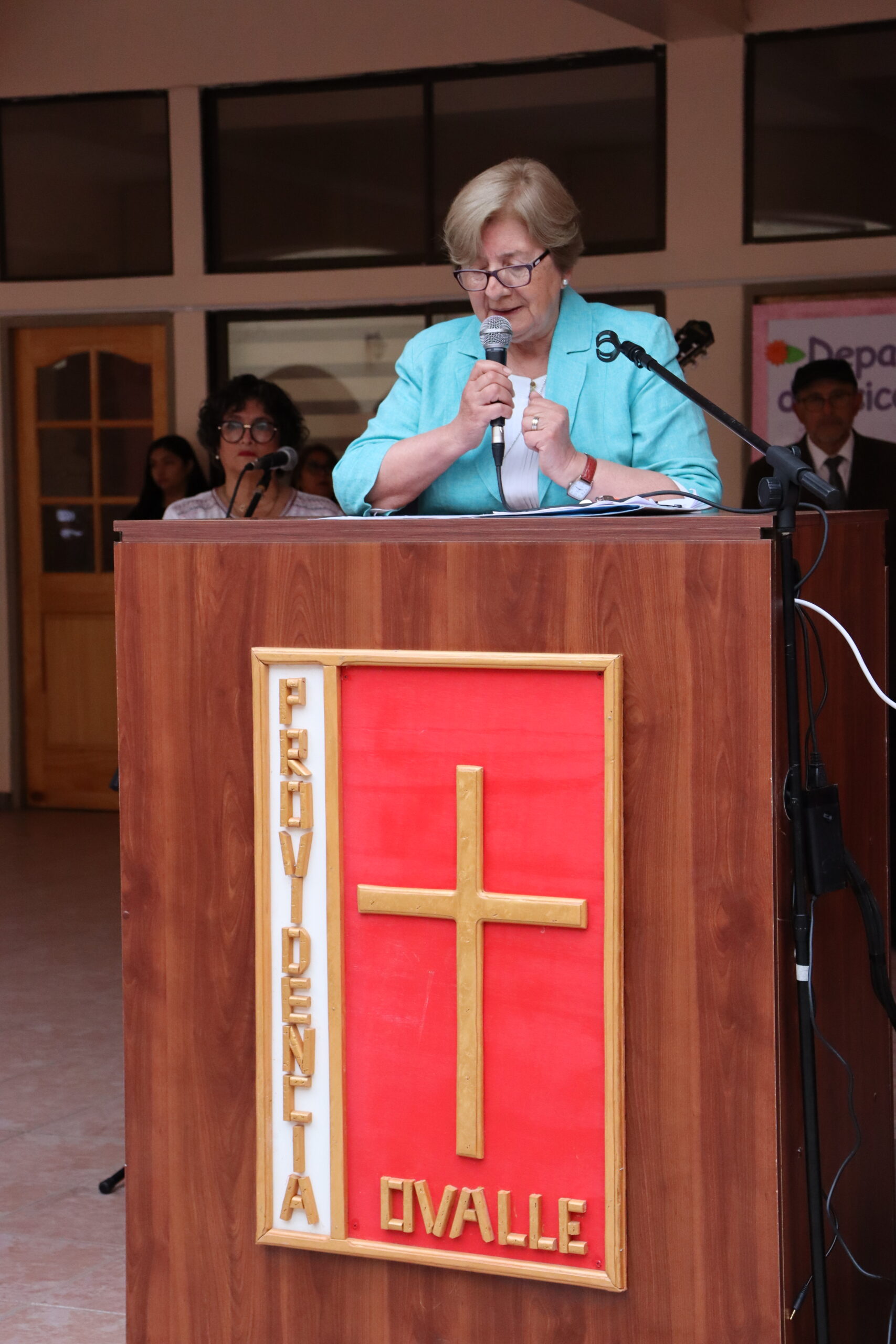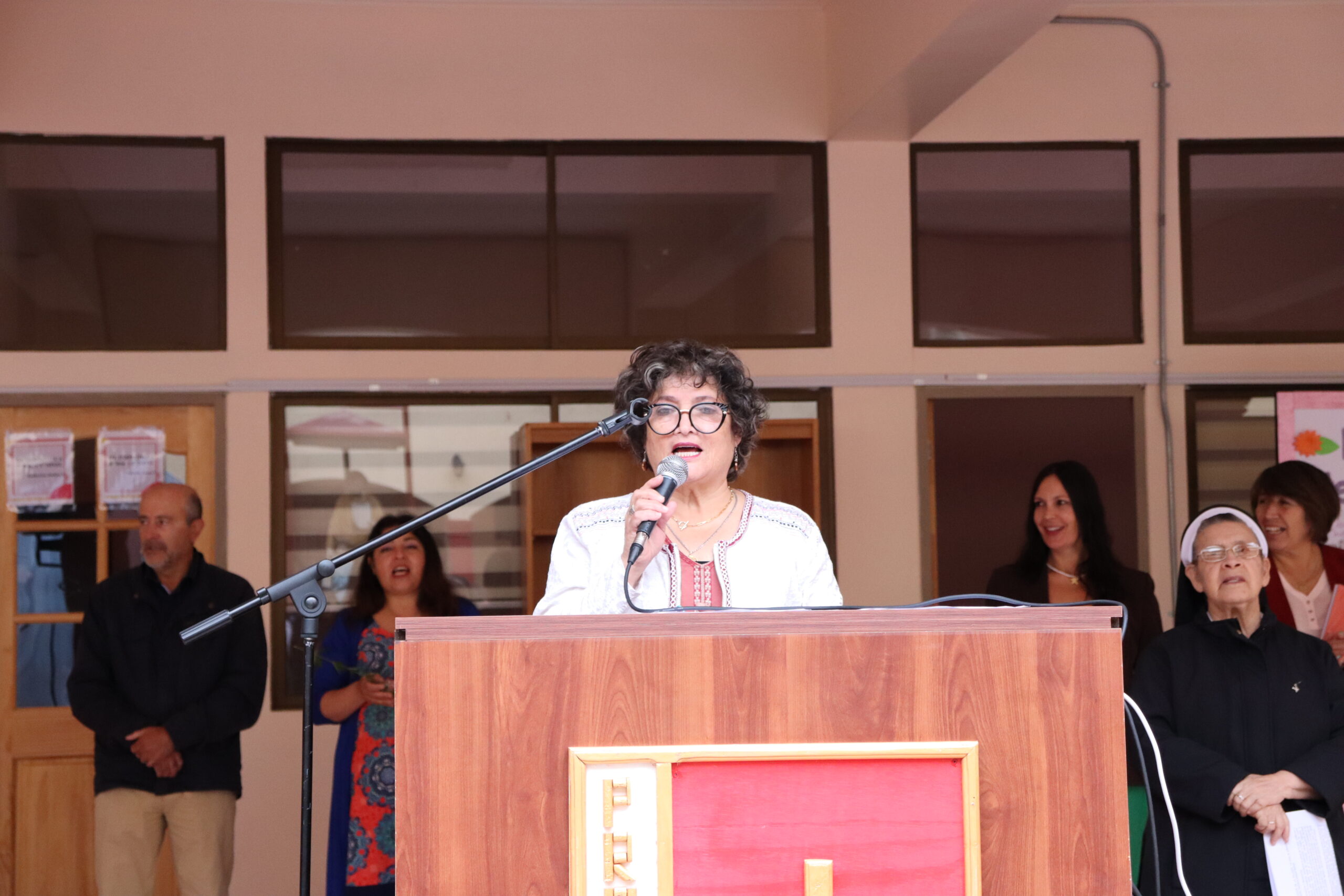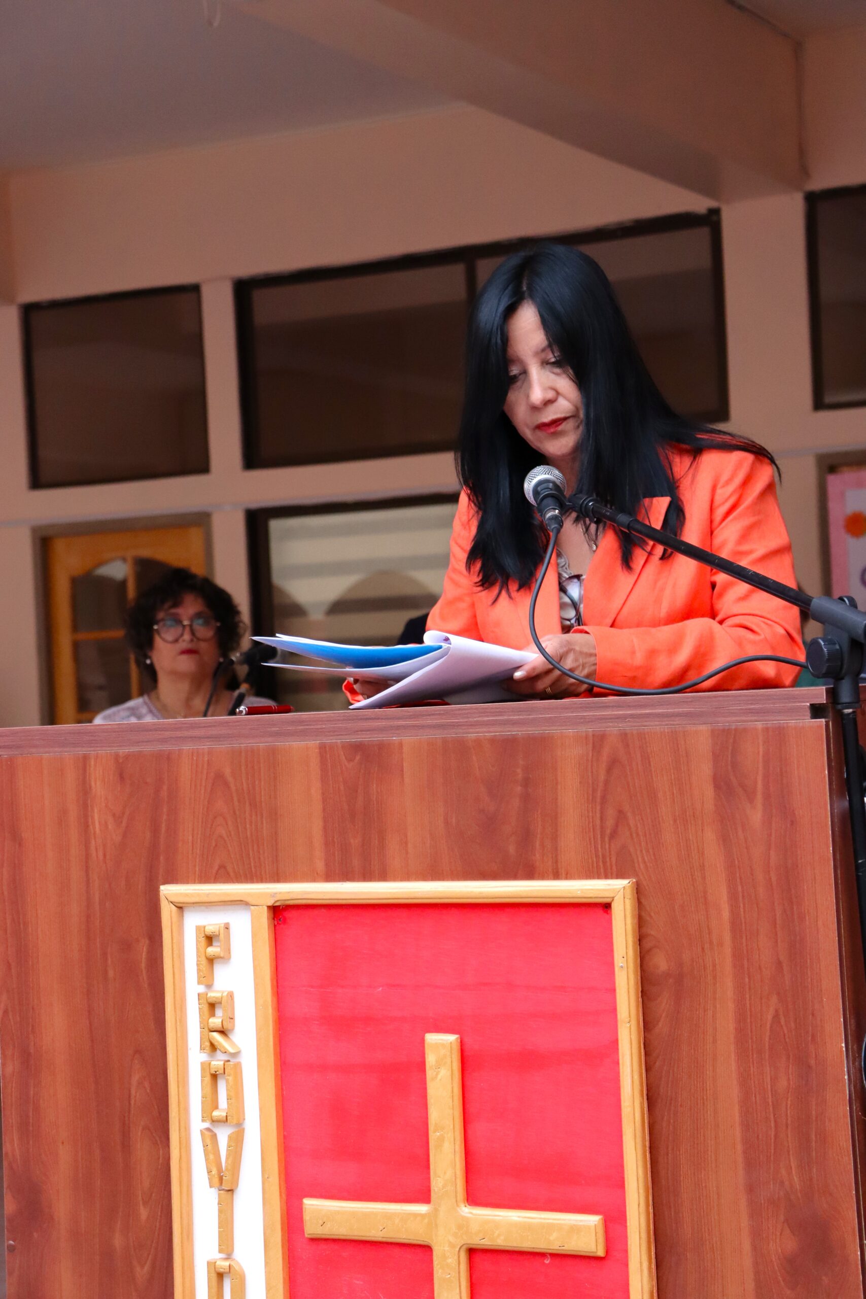 Las palabras de bienvenida estuvieron a cargo de nuestra directora, Cecilia Martínez Salas y la administradora, Miriam Ossandón, momento en el cual oramos para dar gracias al Señor y pedir su bendición para la comunidad y así permanecer siempre unidos en fe y amor de Dios. Por su parte la administradora, Miriam Ossandón dio los agradecimientos por la presencia de padres y apoderados que acompañaron a las estudiantes en su primer día y asimismo se hizo mención de la renovación de recursos de infraestructura, tales como; pisos de las salas, cortinaje, mobiliarios y tecnología, incorporando micrófonos para proteger la voz de los docentes y mejorar la escucha de las estudiantes, todo esto incorporado a las pizarras BigDatta en todas las salas de clases y talleres de las especialidades.