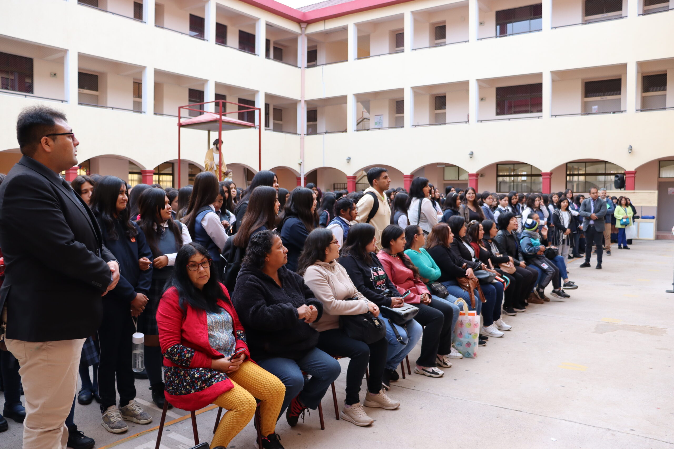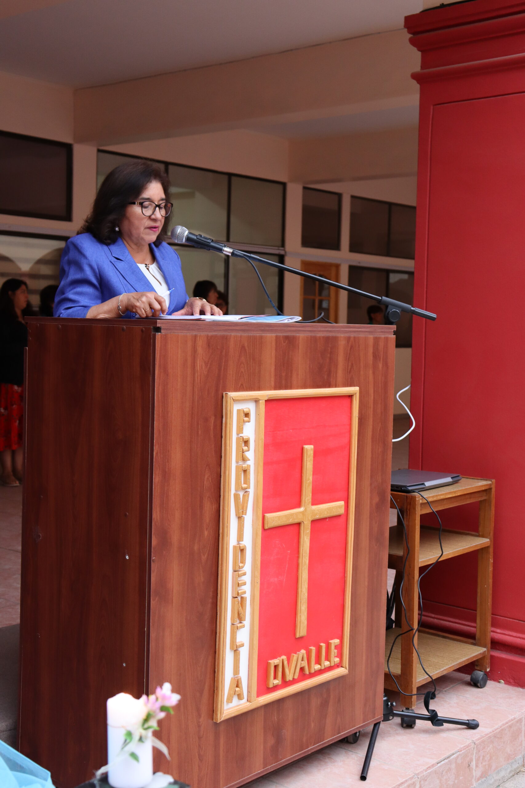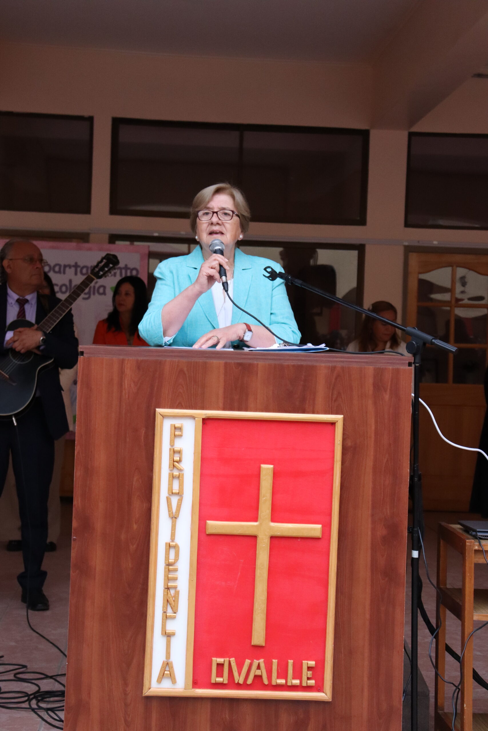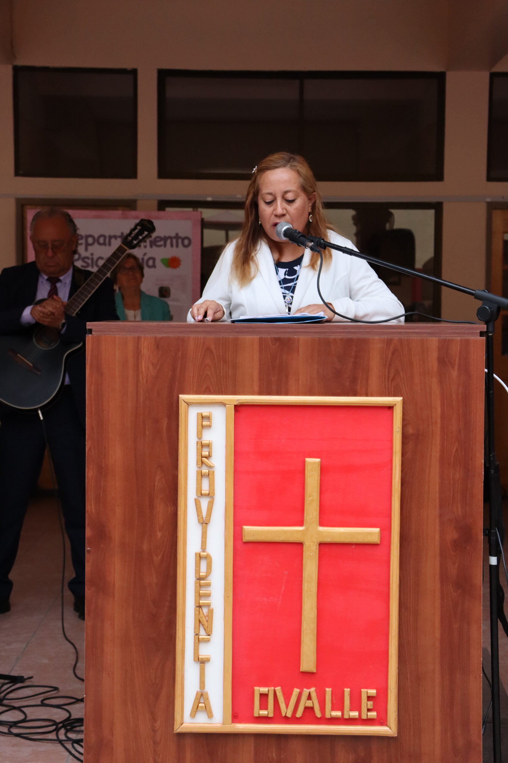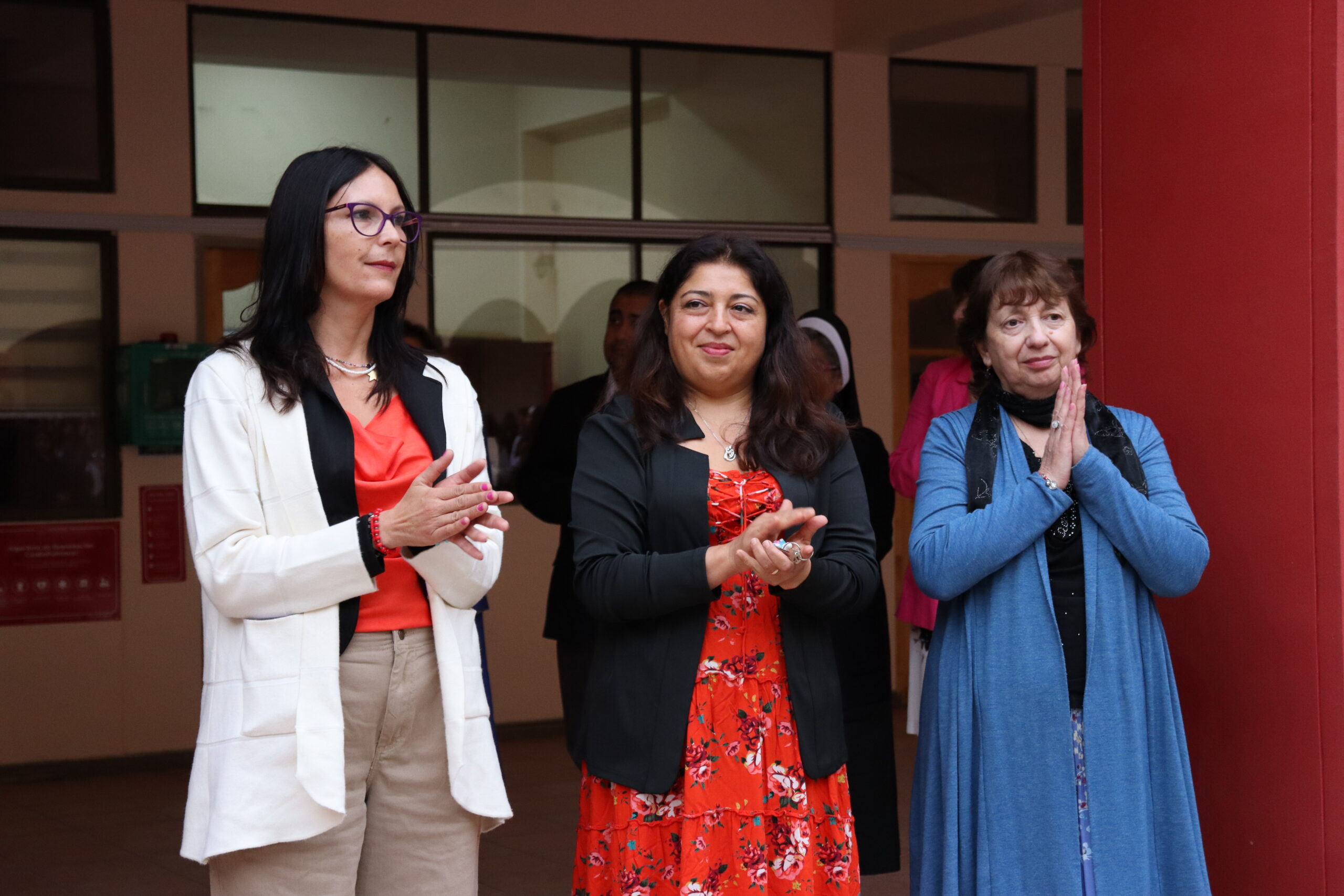 Las palabras de bienvenida estuvieron a cargo de nuestra directora, Cecilia Martínez Salas y la administradora, Miriam Ossandón, momento en el cual oramos para dar gracias al Señor y pedir su bendición para la comunidad y así permanecer siempre unidos en fe y amor de Dios. Por su parte la administradora, Miriam Ossandón dio los agradecimientos por la presencia de padres y apoderados que acompañaron a las estudiantes en su primer día y asimismo se hizo mención de la renovación de recursos de infraestructura, tales como; pisos de las salas, cortinaje, mobiliarios y tecnología, incorporando micrófonos para proteger la voz de los docentes y mejorar la escucha de las estudiantes, todo esto incorporado a las pizarras BigDatta en todas las salas de clases y talleres de las especialidades.