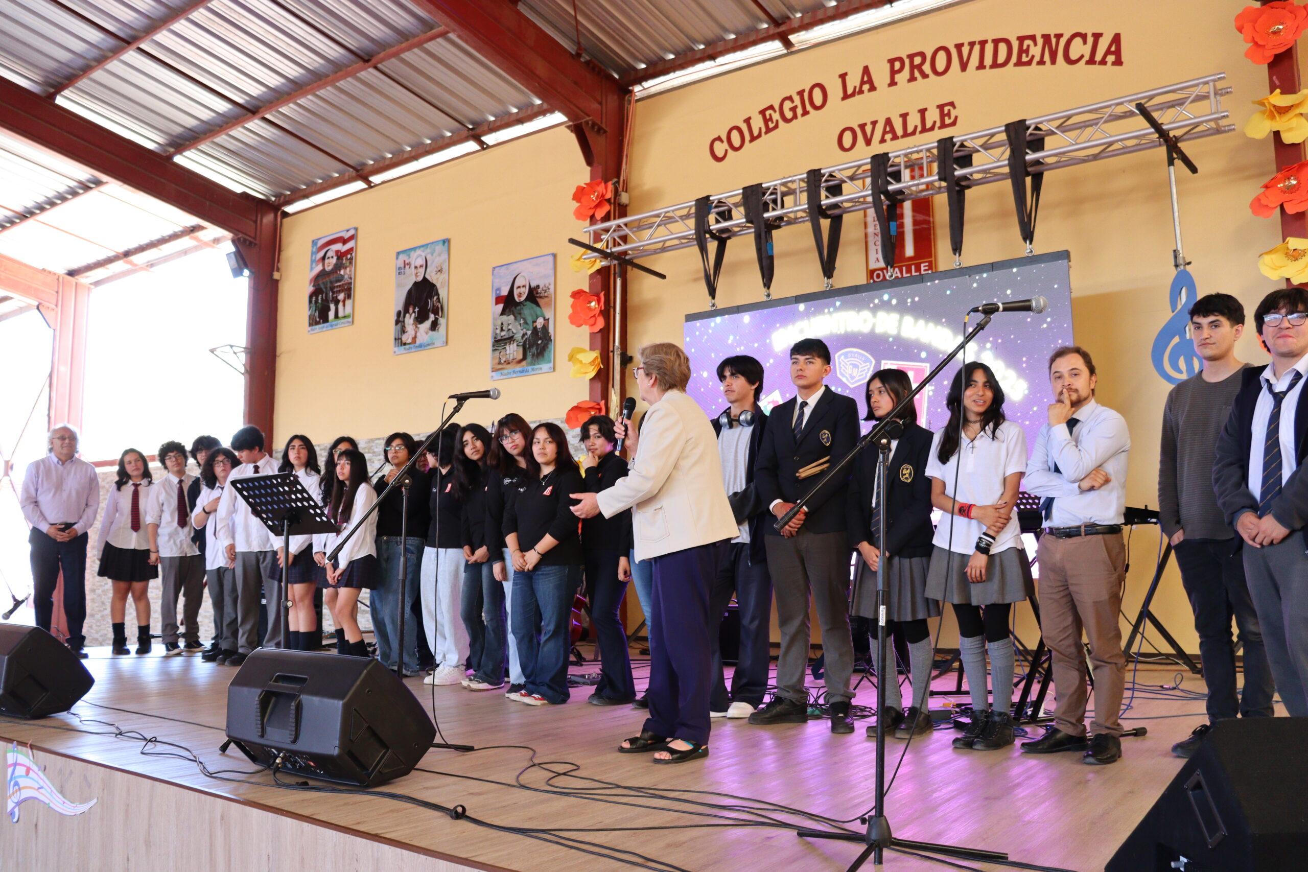 Para cerrar este encuentro, nuestra directora entregó palabras de felicitación a todos los participantes, destacando que “la música nos hace bien” y que espacios como este fortalecen la fraternidad entre instituciones. El acto culminó con el tradicional grito de nuestro colegio, como símbolo de agradecimiento y unión.