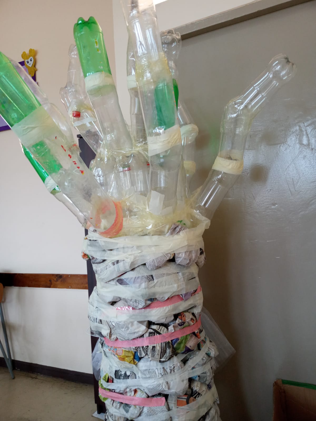 Materiales reciclados, tales como botellas plásticas, papelerías y tubos de papel higiénico, fueron dando forma a esculturas embotelladas que sirvieron para crear un “Bosque Encantado” utilizado para celebrar el día del niño y la niña con los jardines infantiles de la comuna.