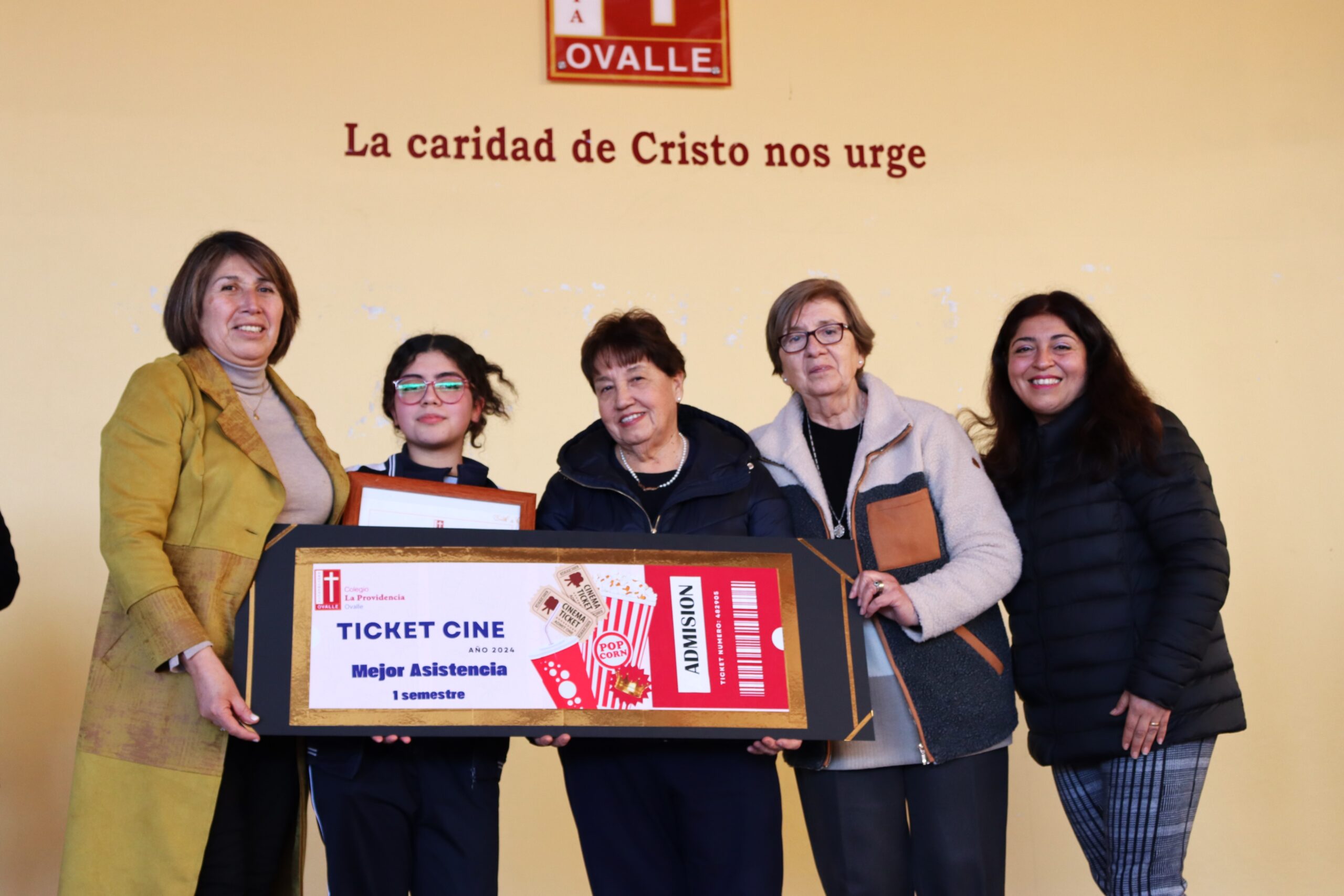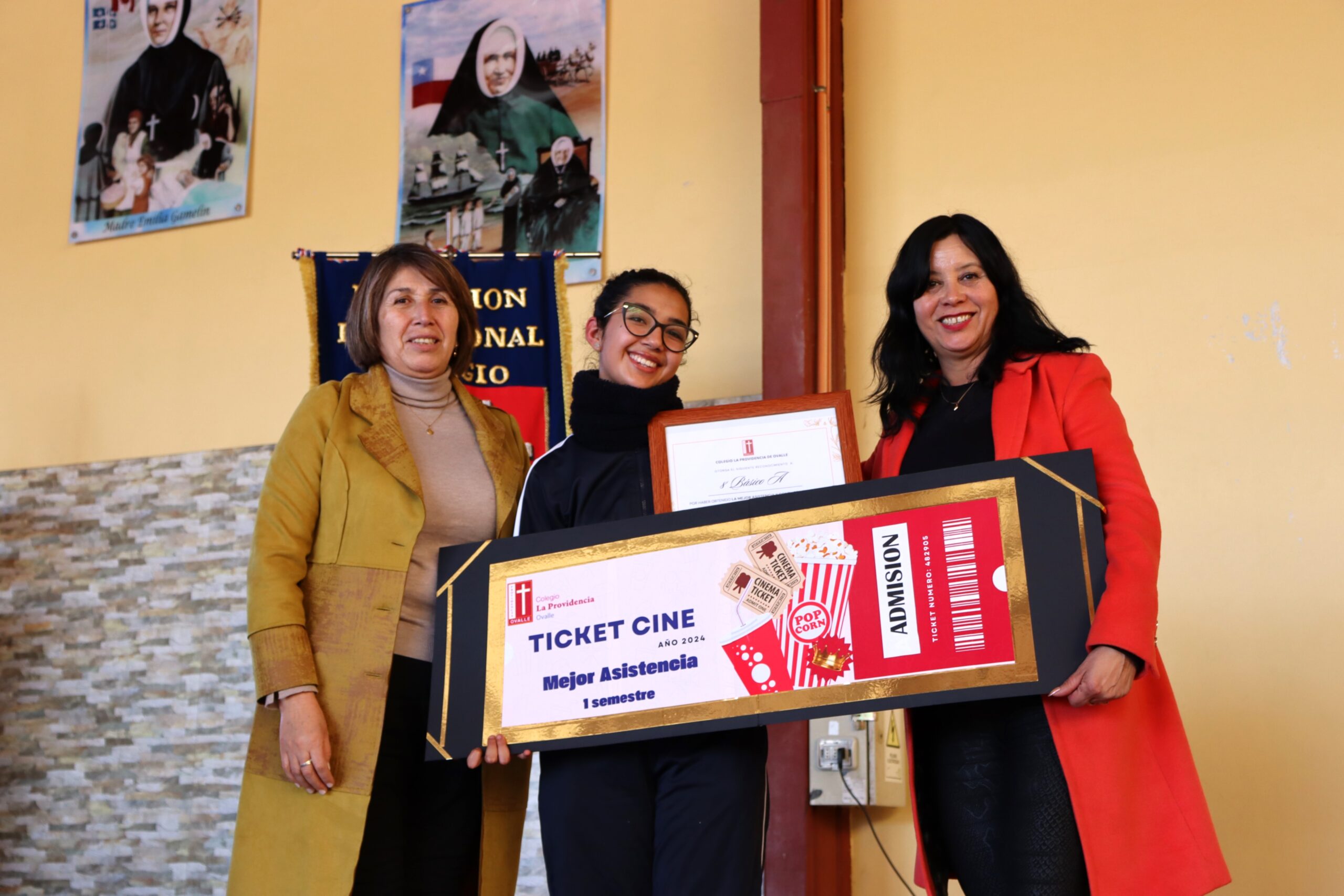 Los cursos ganadores, representados por las presidentas de curso junto a sus profesores jefes, recibieron de la mano de la directora Cecilia Martínez Salas y administradora Miriam Ossandón Vega un diploma de reconocimiento y un ticket valido por una salida al cine para el curso completo.