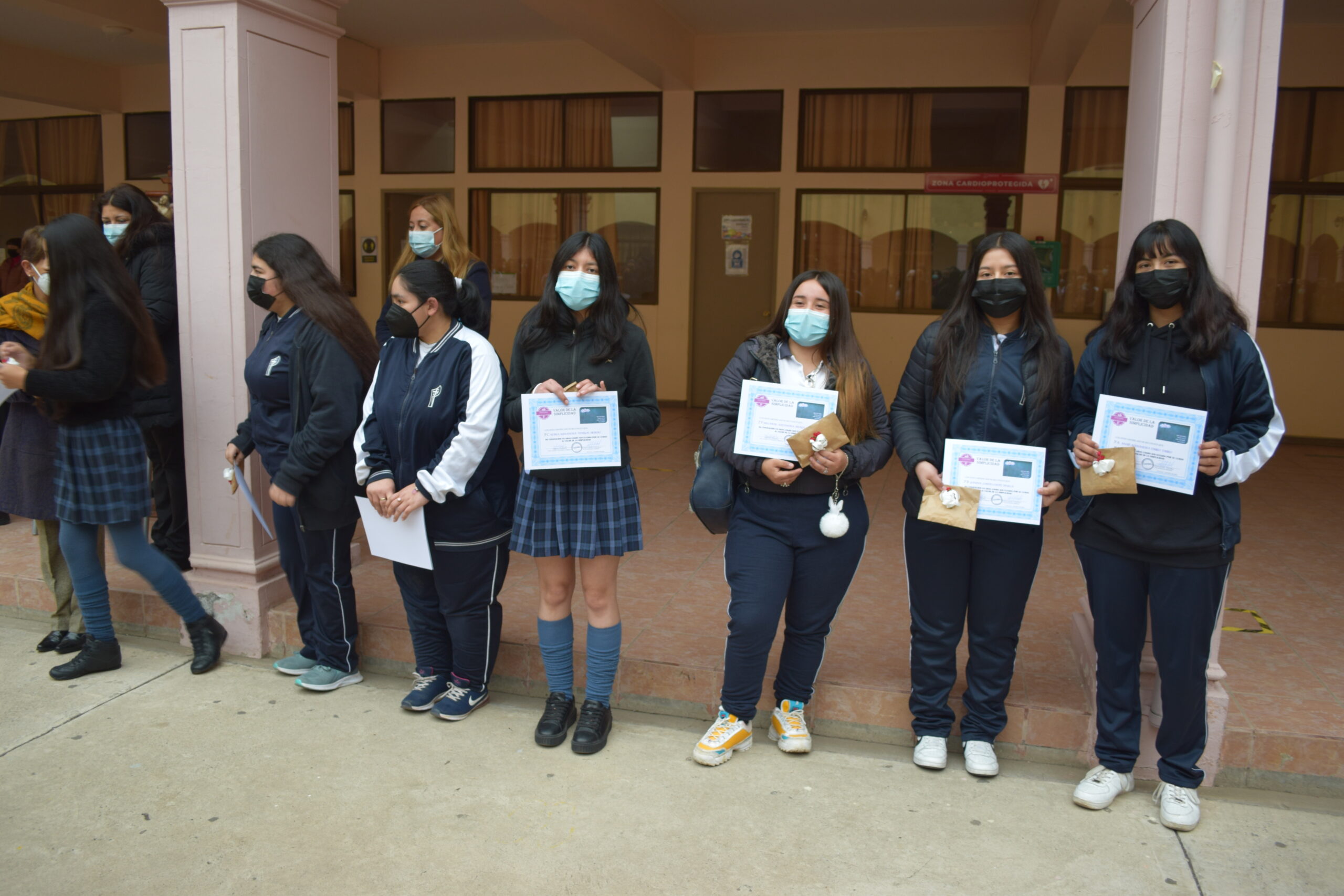 Este lunes 29 de agosto durante la formación, se realizó el reconocimiento que las estudiantes realizan a sus compañera de curso, a quienes identifican con el valor del mes de julio, la “Simplicidad”.