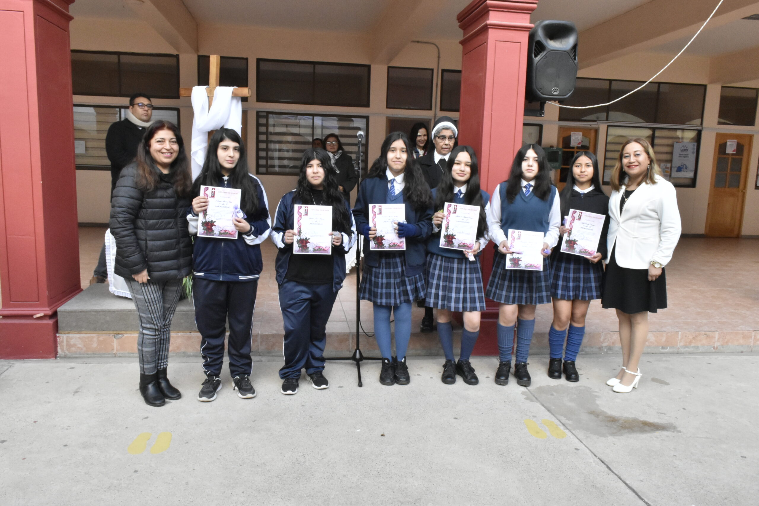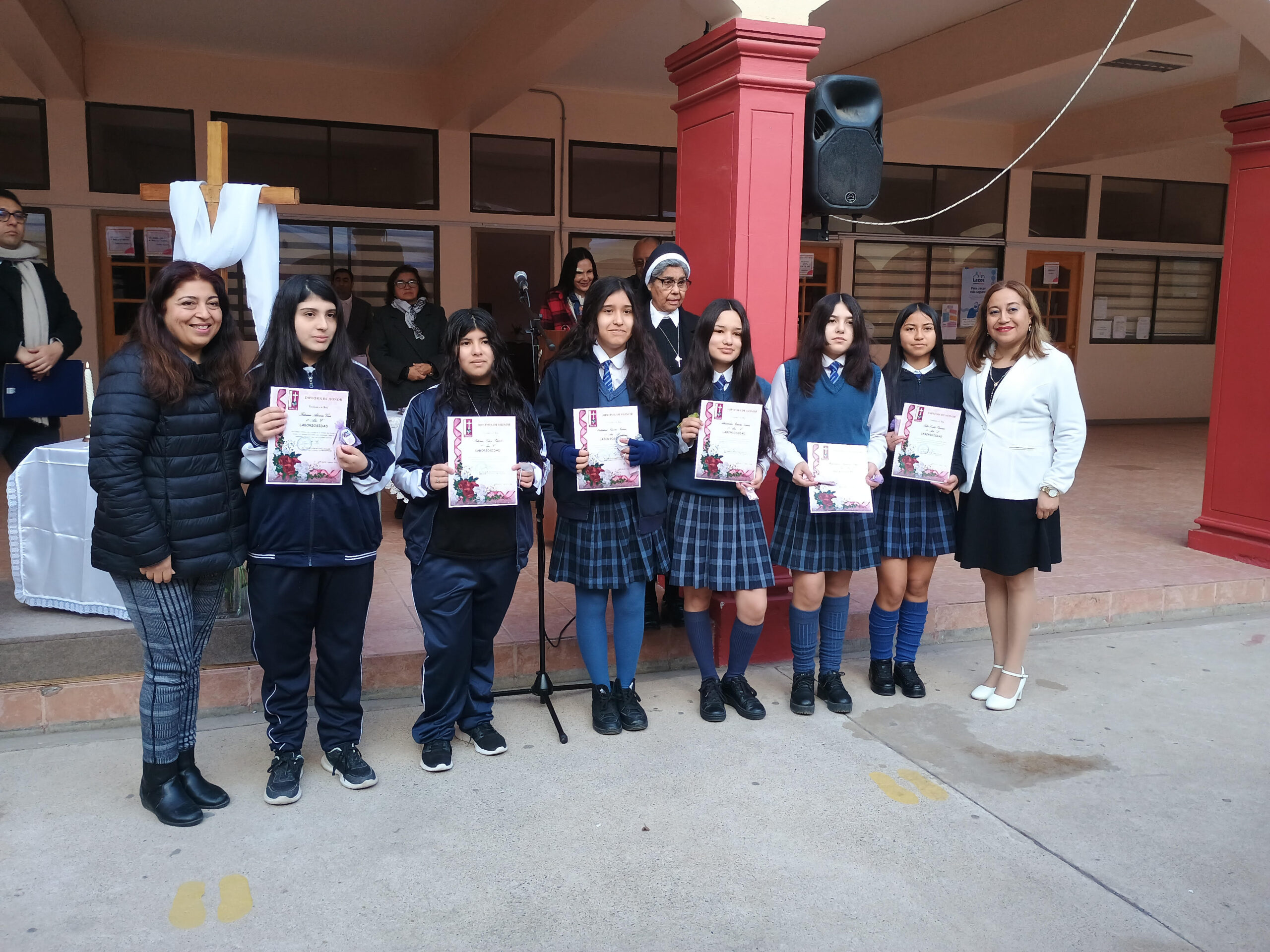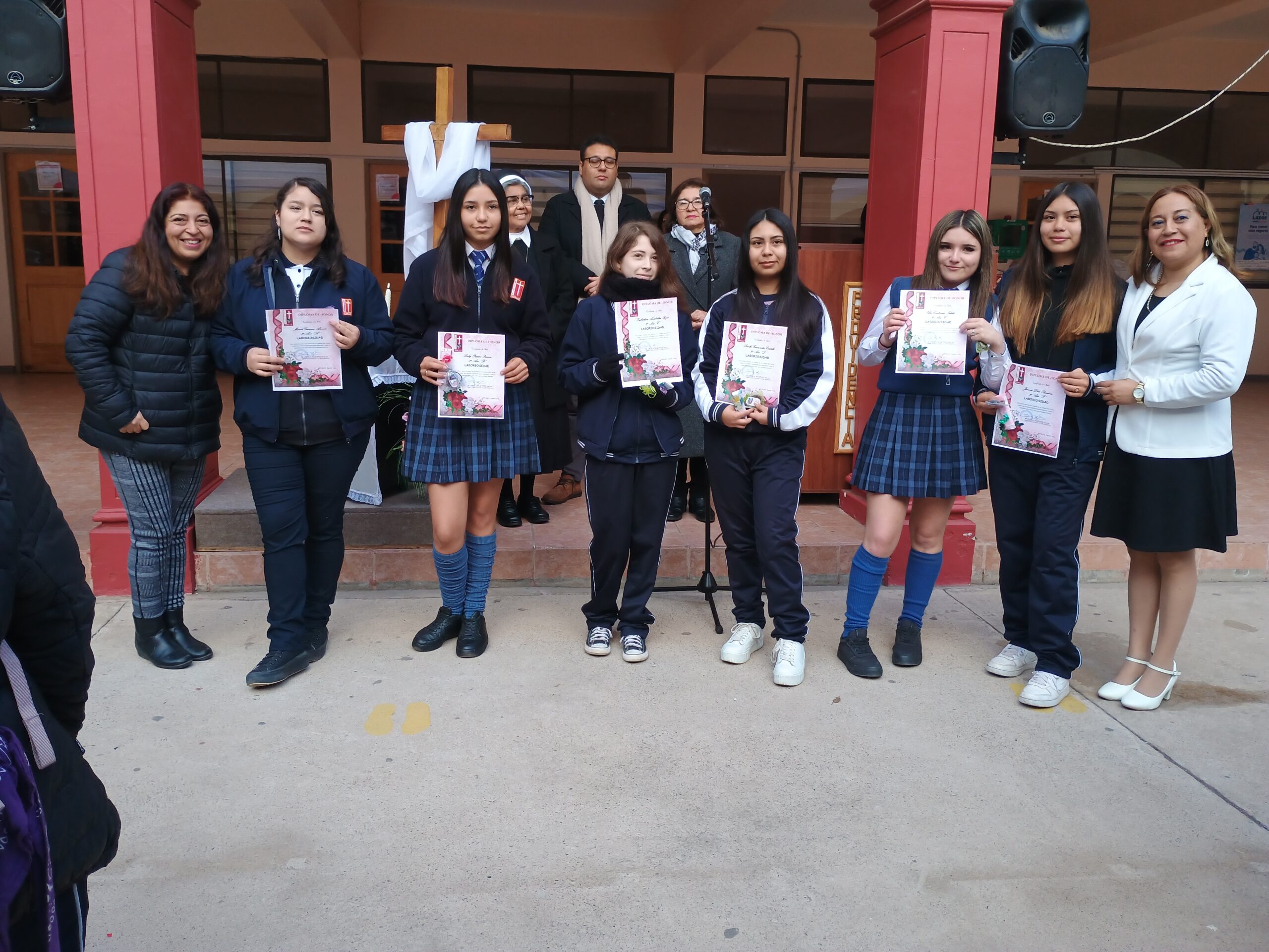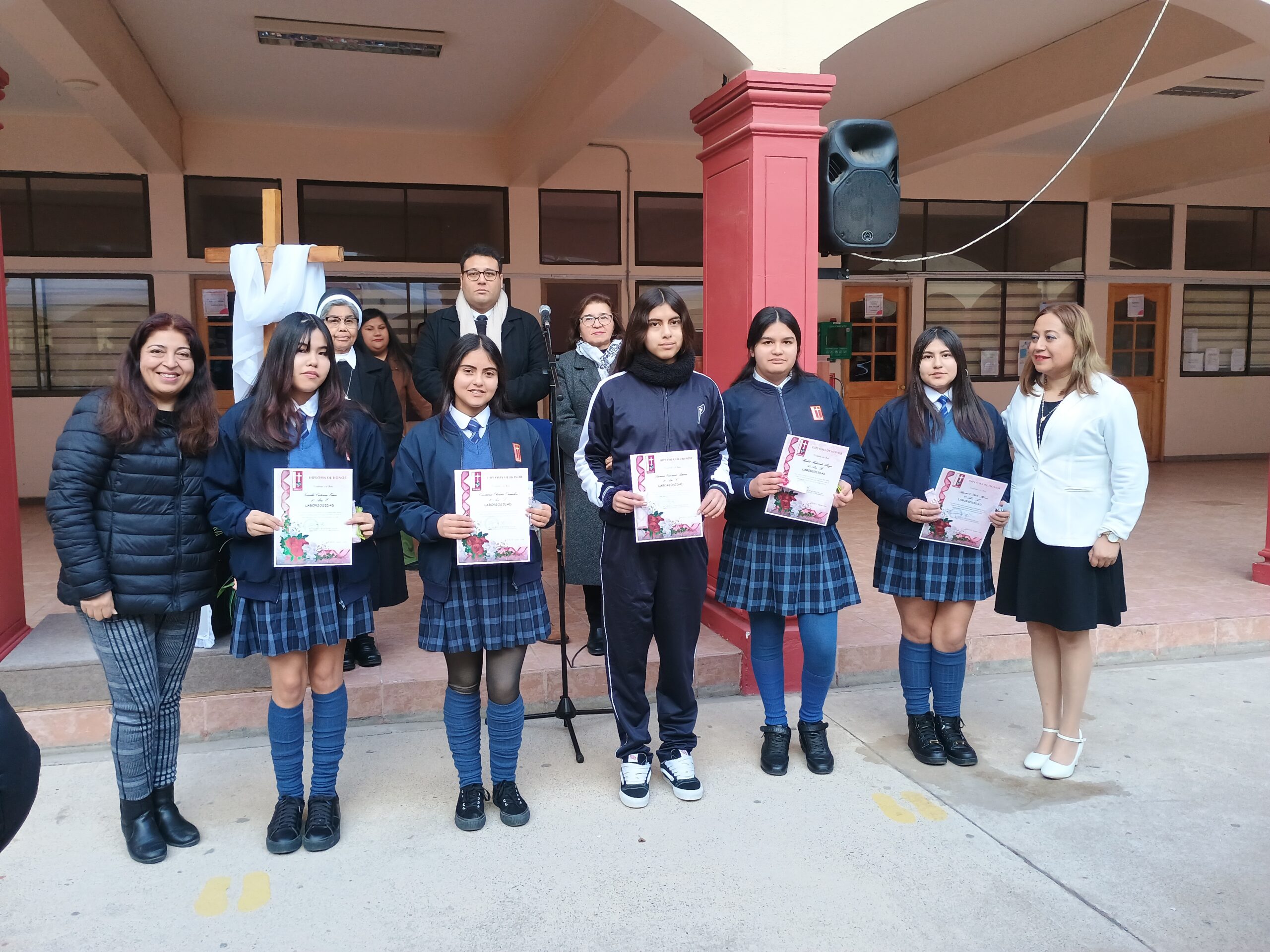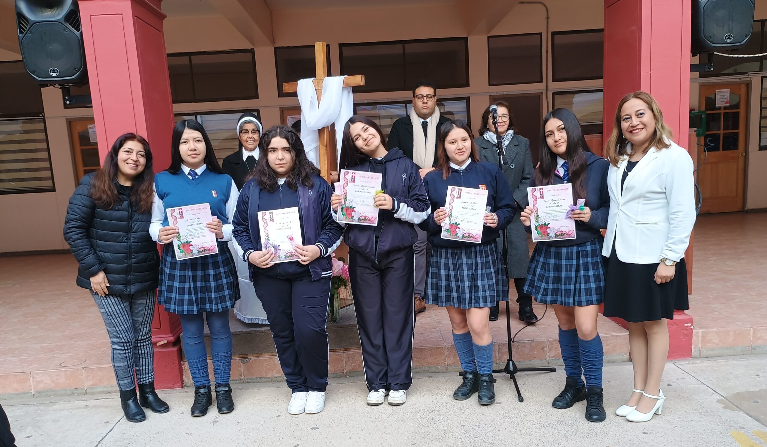El pasado 30 de agosto, durante la formación en el patio San José, el equipo de Pastoral reconoció y premió a las estudiantes que fueron elegidas por sus compañeras como representantes del valor de la Laboriosidad, fueron 24 estudiantes, una por curso, quienes fueron premiadas e invitadas a compartir un desayuno junto con la Hermana Elvira Letelier y el equipo directivo.
