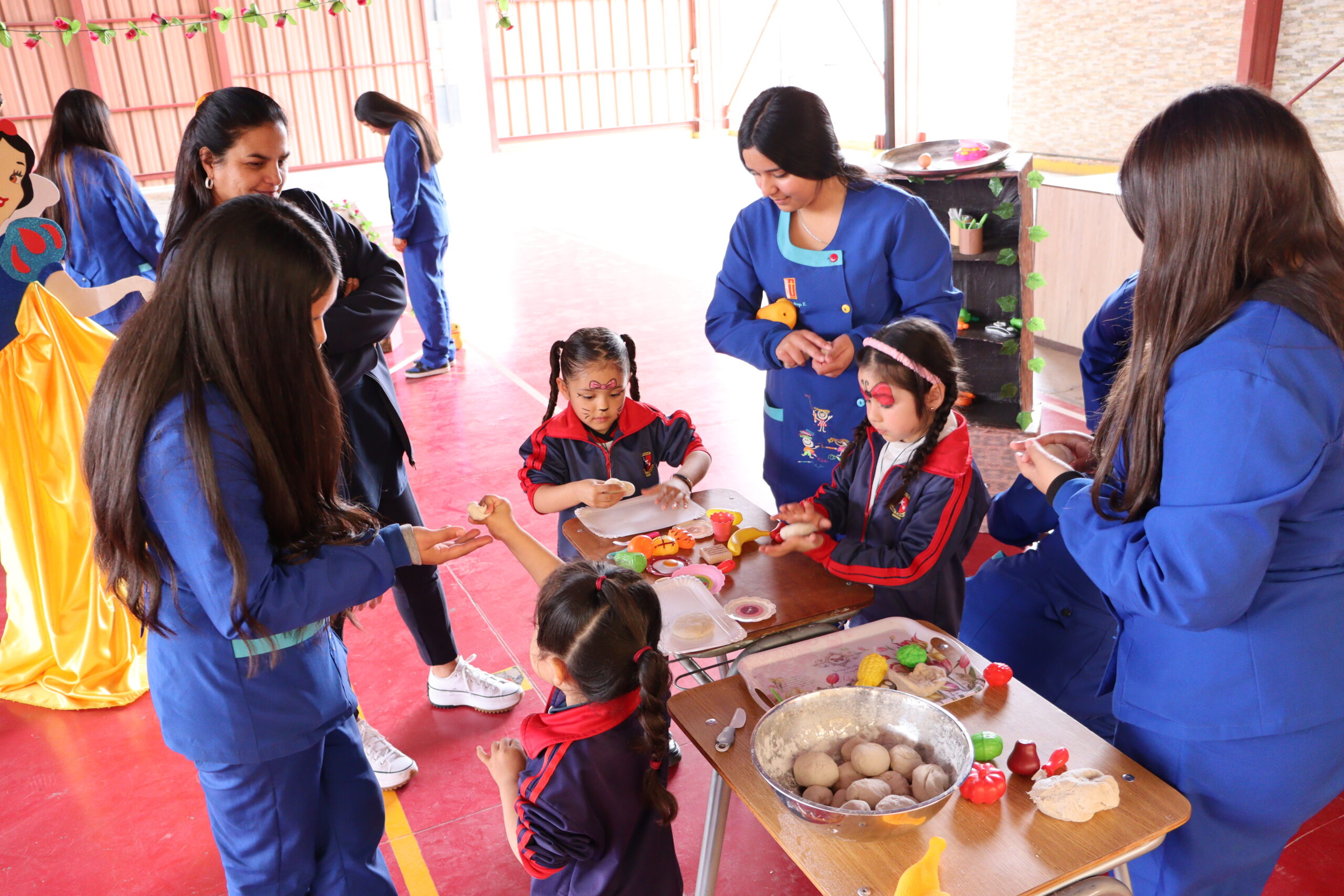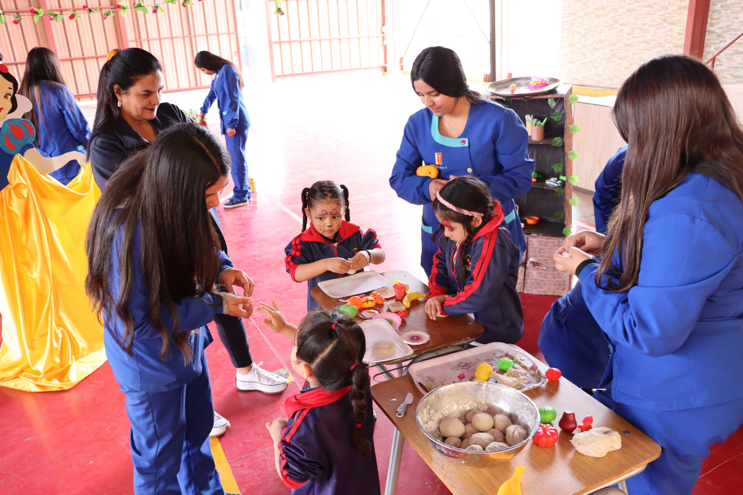 Las estudiantes de la especialidad de Párvulo presentaron el Proyecto Blanca Nieves, una experiencia artística y educativa que cautivó a los más pequeños. Además de la obra, los niños participaron en actividades recreativas y tuvieron la oportunidad de realizarse pinta caritas, lo que dio un toque especial de color y diversión a la jornada.