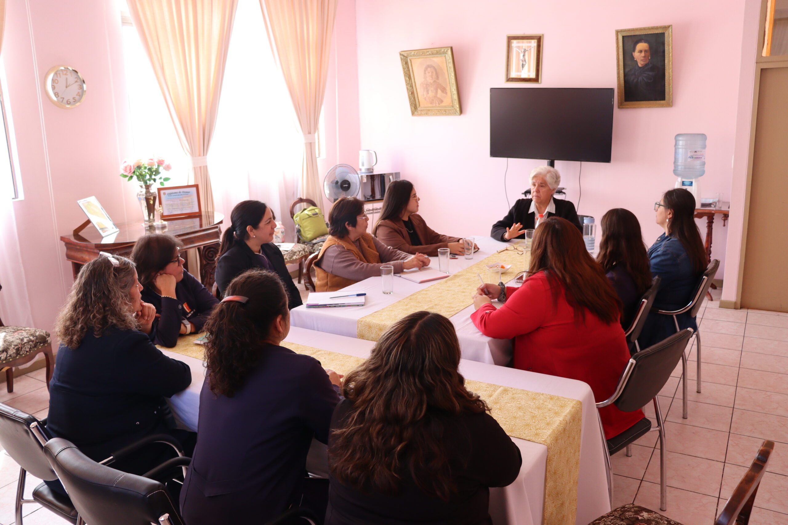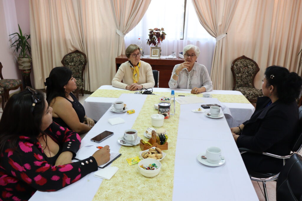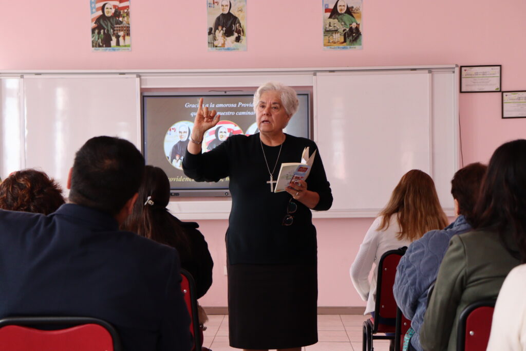 Durante dos días, nuestra comunidad educativa recibió la valiosa visita de la Hermana Ana Georgina Rozas Gutiérrez, representante de la Oficina de la Causa de Beatificación y Canonización de Madre Bernarda Morín. Su presencia fue un verdadero regalo, pues se reunió con todos los estamentos del colegio, incluyendo estudiantes y el centro de padres, compartiendo reflexiones profundas sobre la vida y legado de la Sierva de Dios.